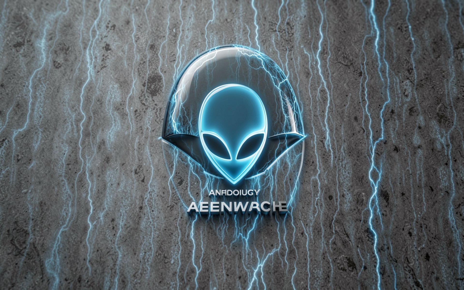 Изображение фокусируется на гладкой текстуре кожи пришельца и глянцевой поверхности шлема, где четко видны блики от неоновых источников. Синие градиенты плавно переходят в глубокие тени на сером бетонном фоне, а тонкие электрические разряды создают динамичный контраст с матовыми участками стены. Перед загрузкой доступен удобный предпросмотр для оценки качества отображения всех световых акцентов на вашем экране.