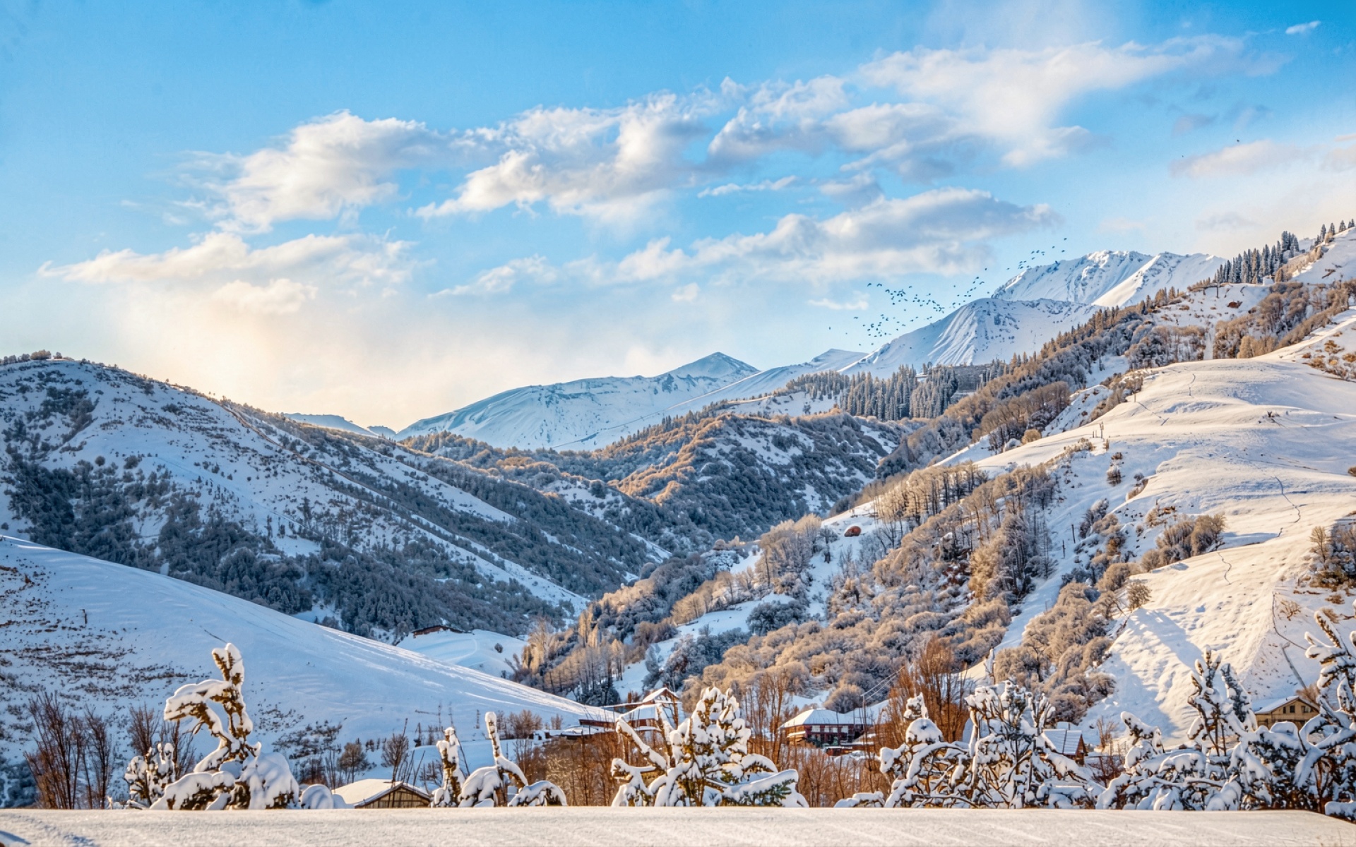 Техническое исполнение файла подчеркивает контраст между холодными тенями в долинах и яркими бликами на вершинах. Текстура свежего снега передана через мягкие градиенты белого и голубого оттенков, а освещение имитирует низкое зимнее солнце. Детализация заснеженных ветвей деревьев на переднем плане создает глубину кадра. На сайте доступен удобный предпросмотр перед загрузкой для оценки качества отображения на вашем экране.