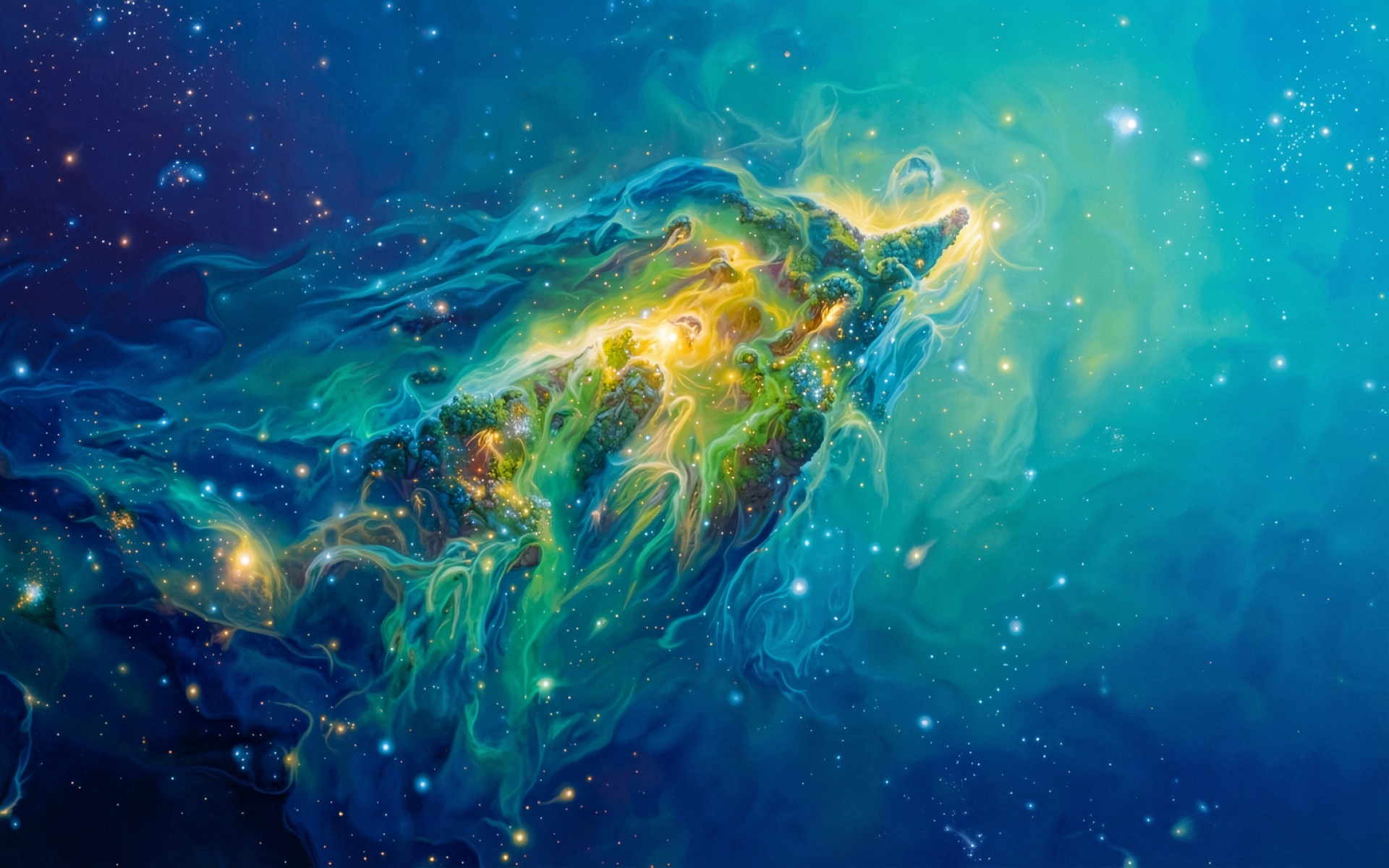 Скачайте с нашего сайта обои Космическая туманность синего и золотого цвета в формате JPG, так как полная цветопередача сохраняется без потери качества.