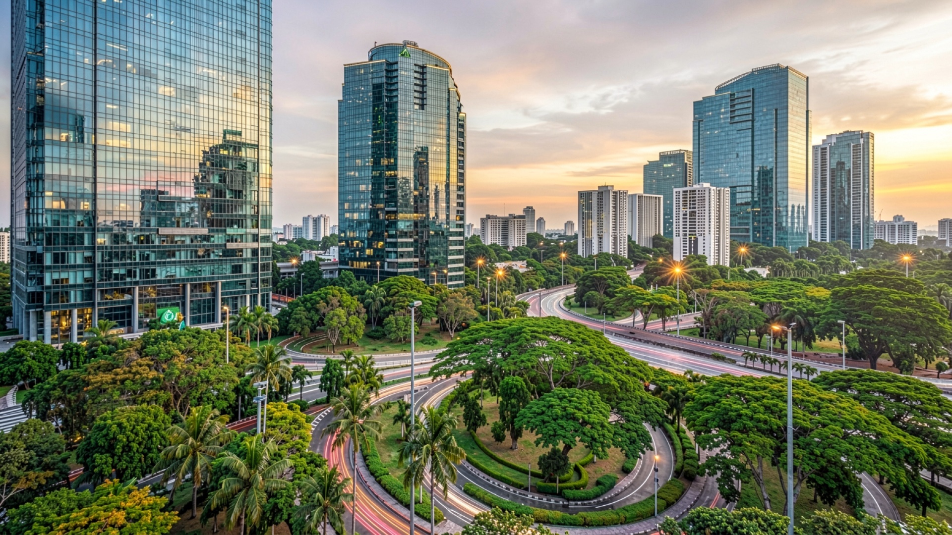 Изображение детально передает отражения закатного неба в стеклянных фасадах зданий. Особое внимание уделено контрасту между холодными оттенками стекла и теплой подсветкой уличных фонарей. Плавные переходы теней в кронах деревьев и мягкий градиент горизонта создают объемную композицию. Перед загрузкой на сайте доступен удобный предпросмотр для оценки качества отображения всех элементов на вашем экране.