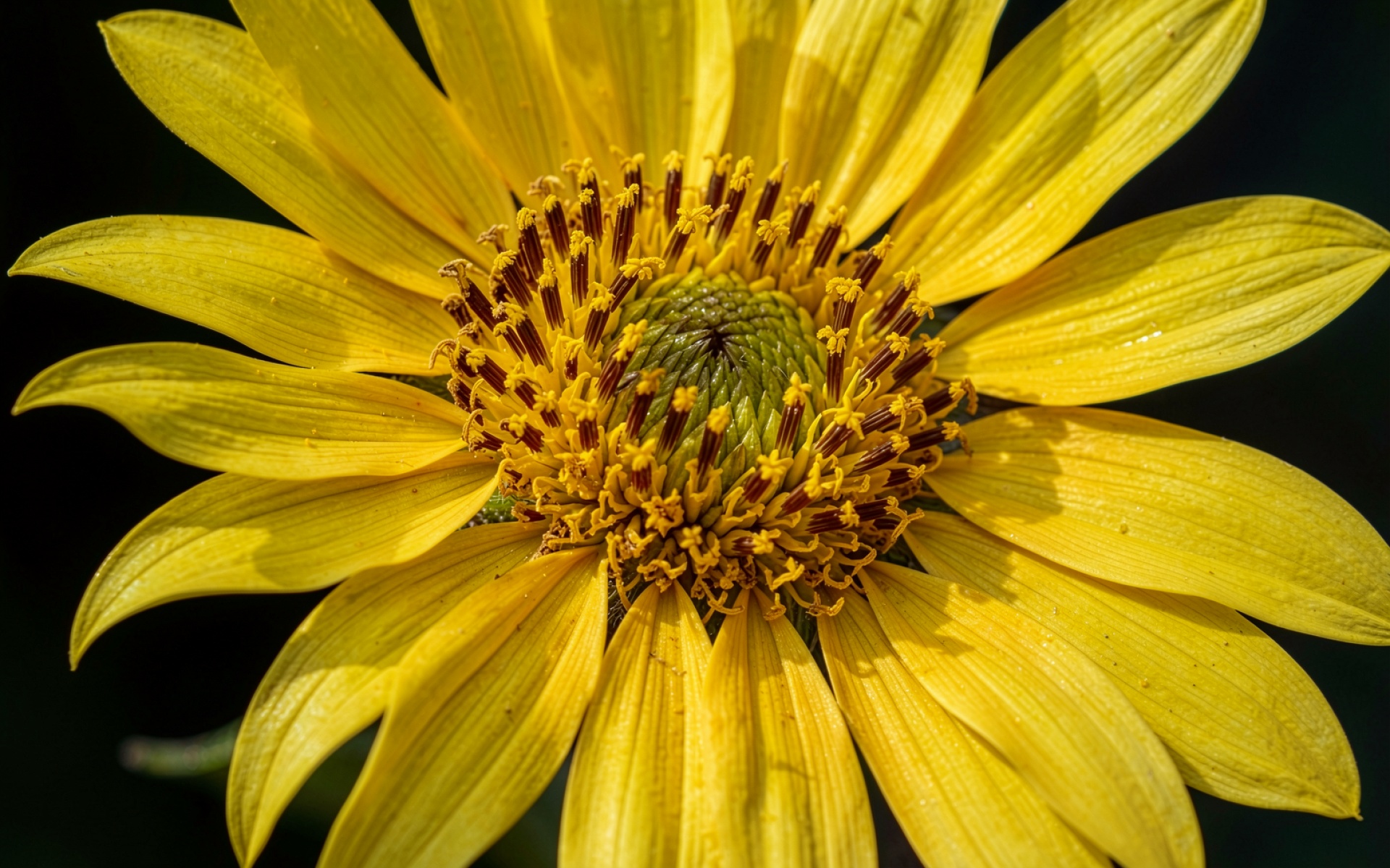 Желтый подсолнух крупным планом на темном фоне обои