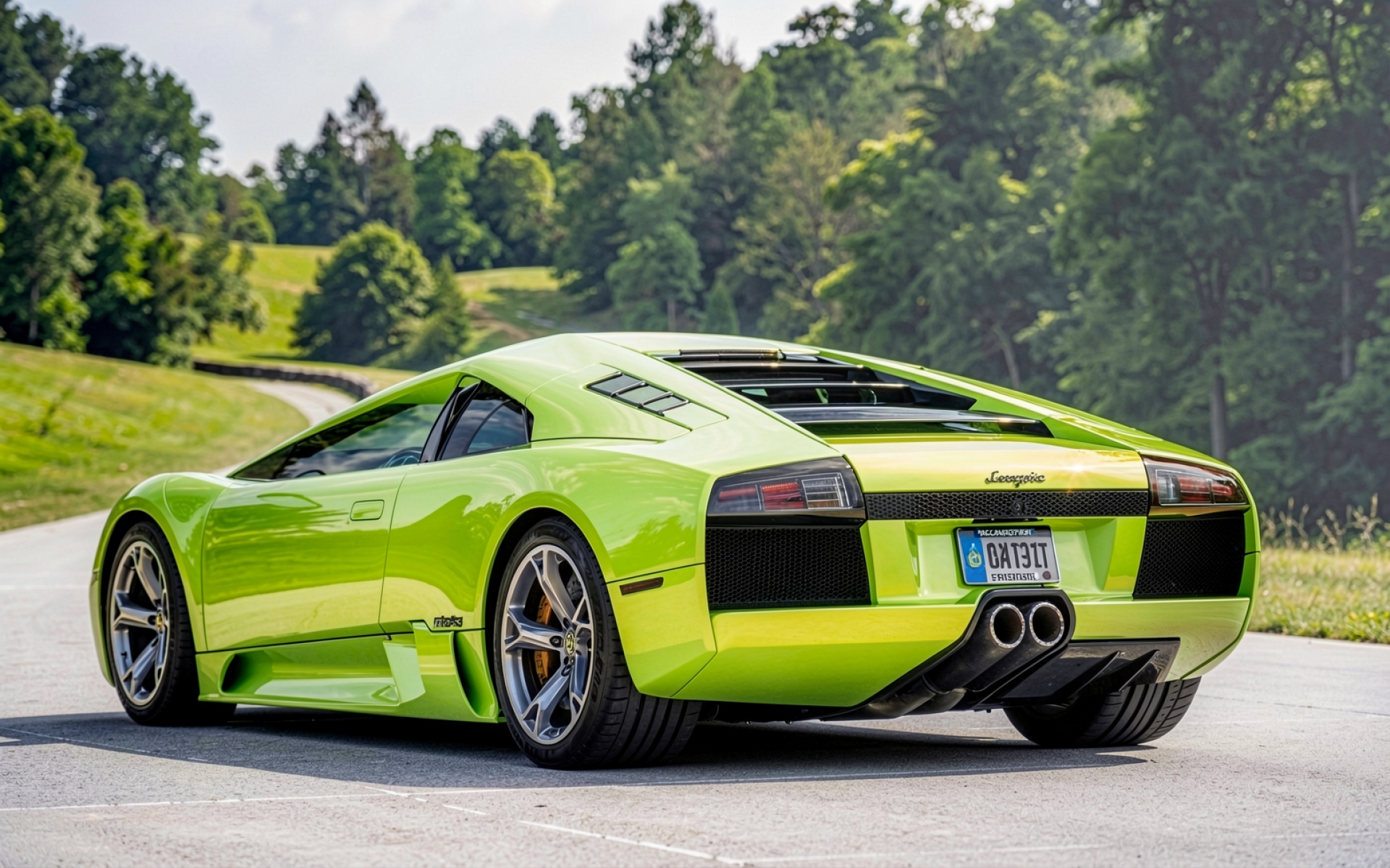 Лаймовый Lamborghini Murcielago на загородной дороге обои