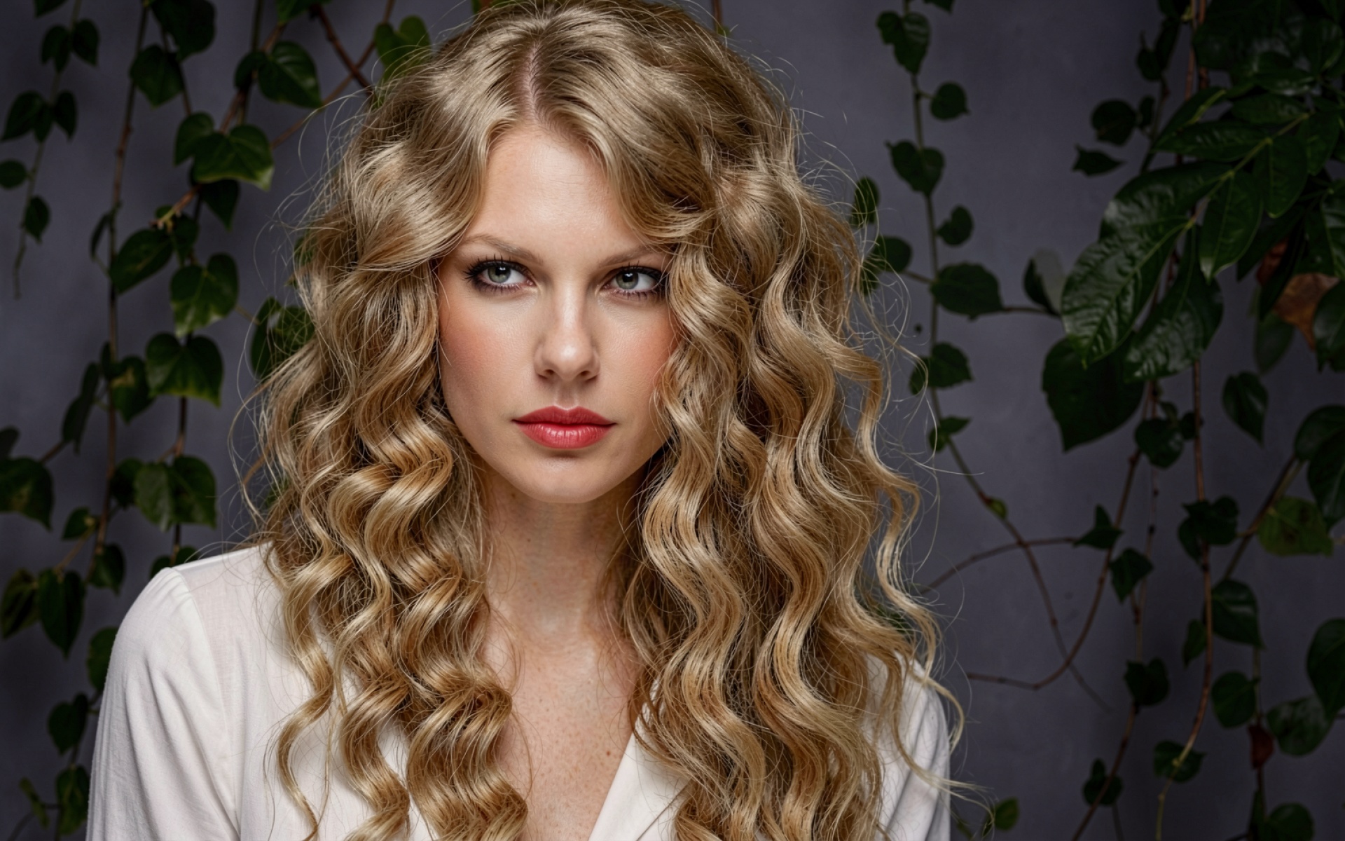 Загрузка JPG обоев Девушка с кудрявыми волосами на фоне зелени с нашего сайта необходима, потому что альтернативы сильнее сжимают изображение, а мы предоставляем оригинал.