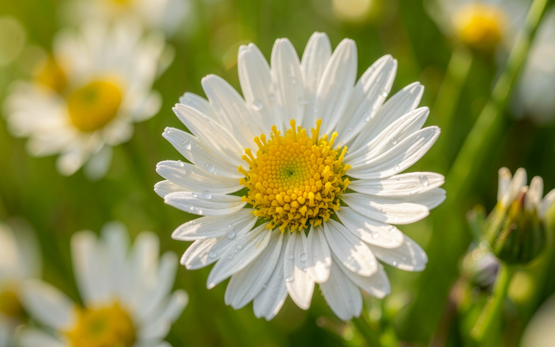 Согласно данным из botanicgardens.org, структура лепестков ромашки обладает особым микрорельефом, который способствует эффективному отражению ультрафиолетового спектра для привлечения насекомых-опылителей. Нажмите кнопку скачивания, чтобы установить эти обои с ромашкой на ваш ПК или телефон прямо сейчас.