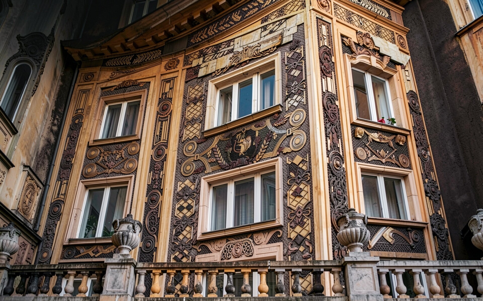 Согласно данным architecturaldigest.com, использование растительных и текучих линий в декоре модерна призвано имитировать природные формы, что требует высокой точности передачи контраста для сохранения читаемости сложных узоров. Нажмите кнопку скачивания, чтобы установить эти обои с фасадом здания на ваш ПК или телефон прямо сейчас.