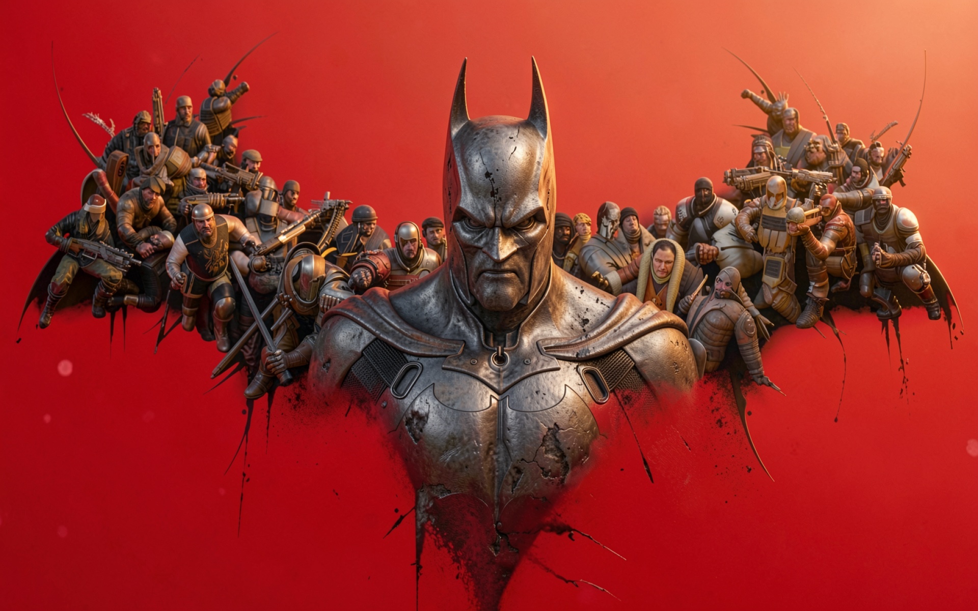 На нашем сайте вы можете скачать JPG файл обоев Бэтмен в стальной броне на красном фоне, и вот почему это важно: другие сайты обрезают края, но у нас остался полный кадр.