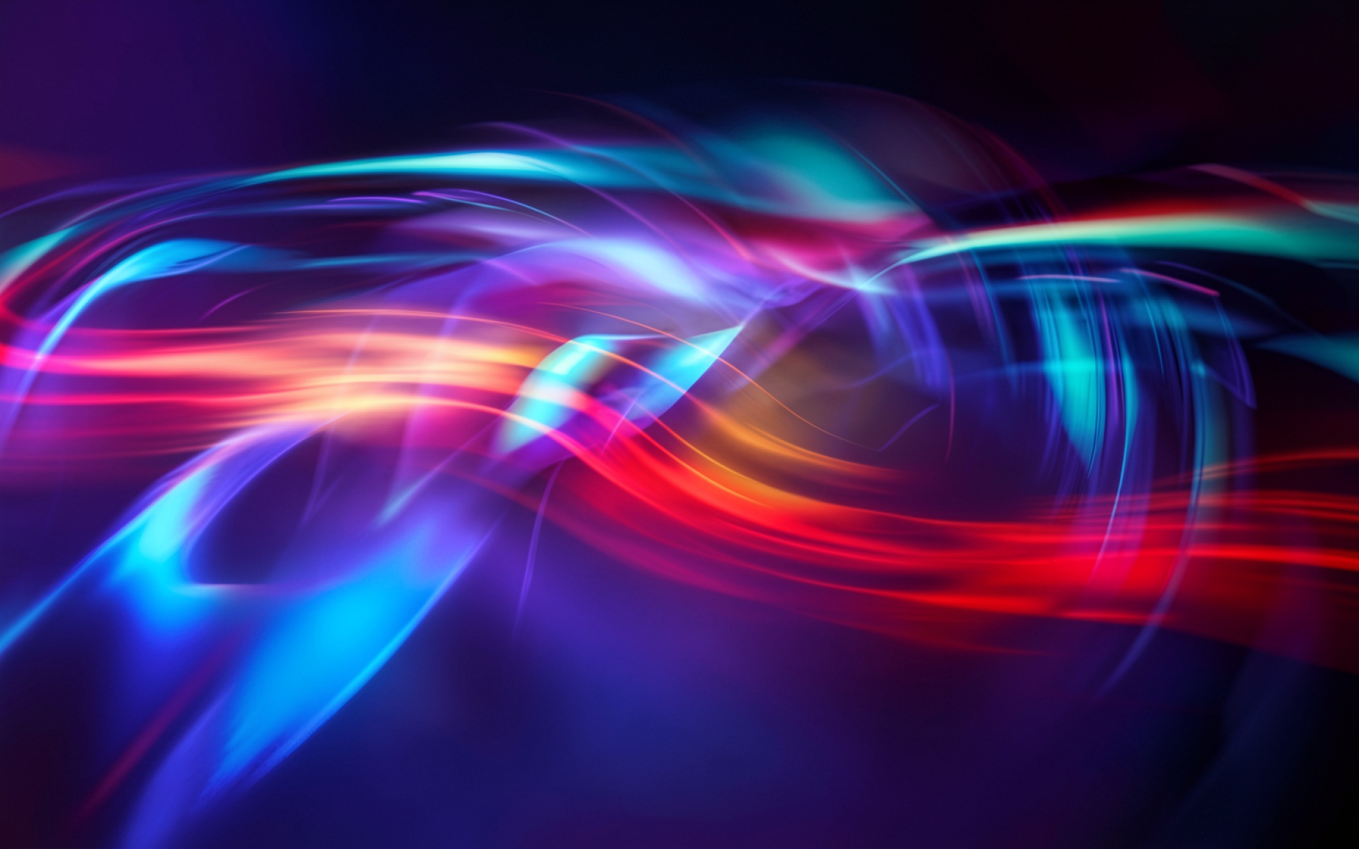 Изображение характеризуется плавными переходами между ярко-синими, красными и голубыми оттенками. Световые потоки создают динамичные изгибы с четкими бликами в центрах свечения и глубокими тенями по краям. Фон имеет мягкий темный градиент, который подчеркивает контрастность неоновых элементов. На сайте доступен удобный предпросмотр перед скачиванием, чтобы оценить качество отображения на вашем экране.