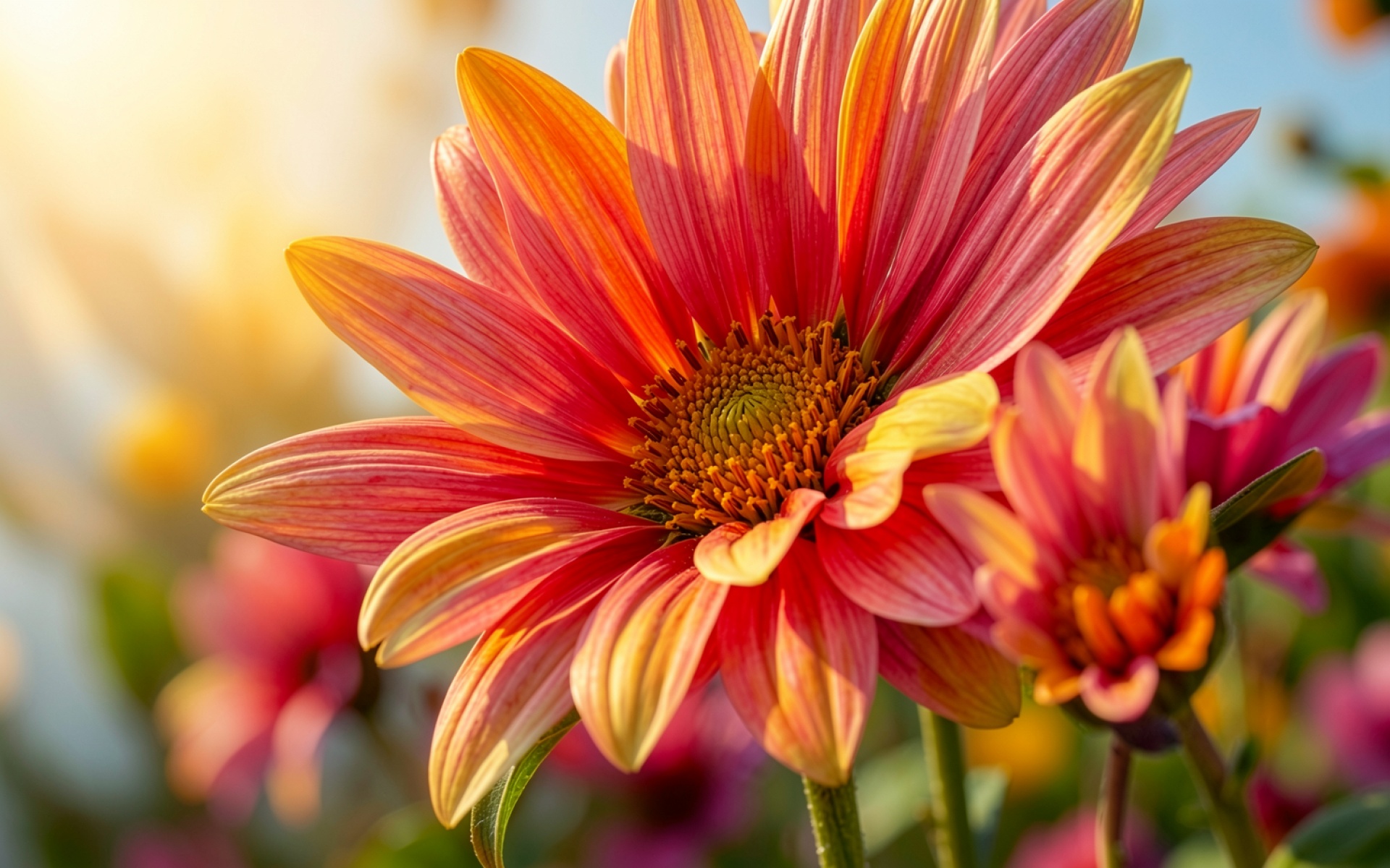 Согласно данным из botanicgardens.org, структура лепестков герберы обладает специфическим микрорельефом, который эффективно рассеивает свет, создавая эффект внутреннего свечения при прямом солнечном освещении. Нажмите кнопку скачивания, чтобы установить эти обои с цветком на ваш ПК или телефон прямо сейчас.