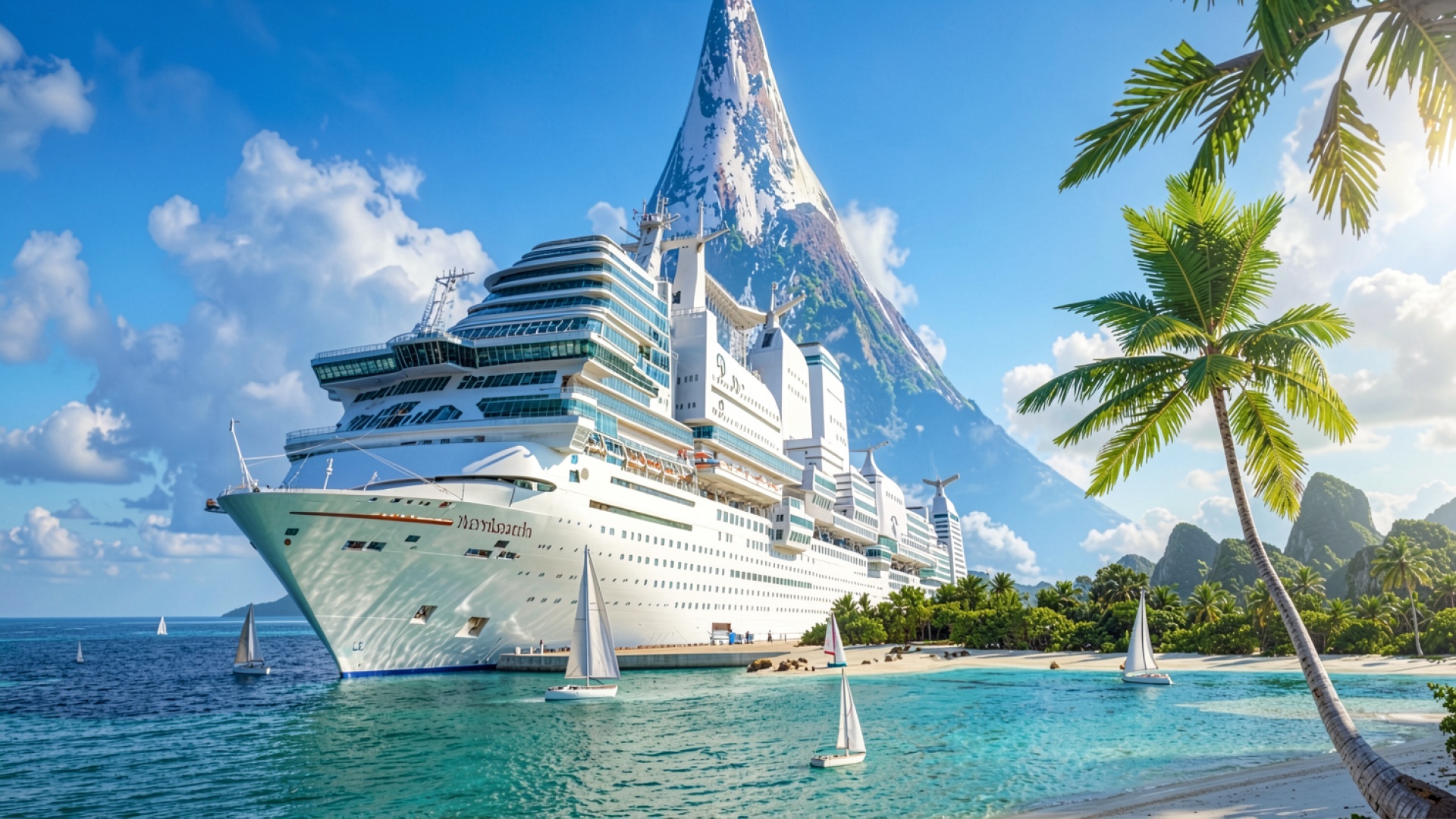 На нашем сайте вы можете скачать обои Белый круизный лайнер в тропической лагуне в JPG для ПК или телефона – и вот почему: изображение подверглось минимальному сжатию, что позволило сохранить все детали.