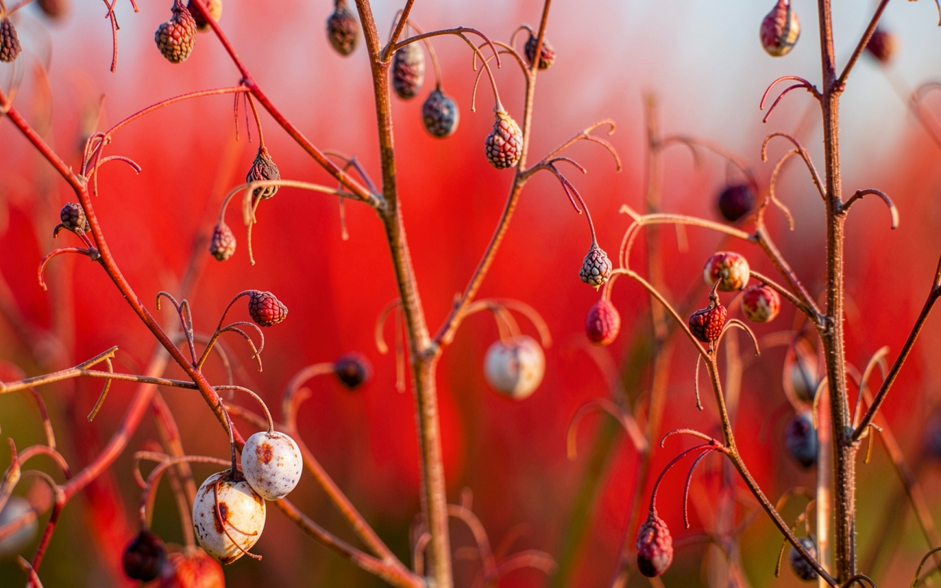 Согласно данным с botanicalgarden.org, красный пигмент антоцианин в плодах и стеблях растений осенью служит защитой от ультрафиолета и привлекает птиц для распространения семян. Нажмите кнопку скачивания чтобы установить эти обои с ягодами на ваш ПК или телефон прямо сейчас.