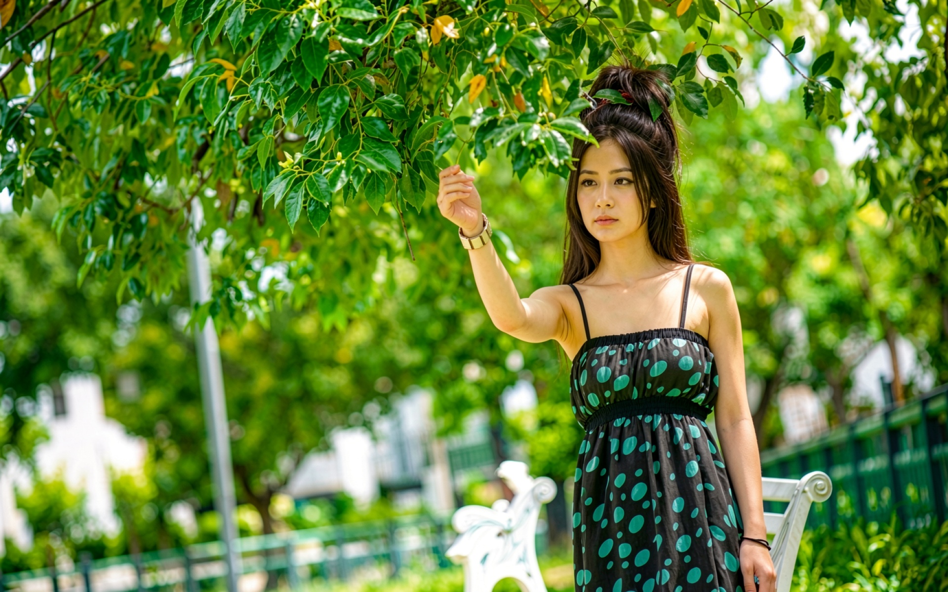 Согласно данным с psychologytoday.com, зеленый цвет листвы в сочетании с темными тонами одежды вызывает у наблюдателя чувство спокойствия и психологического равновесия за счет природного баланса спектра. Нажмите кнопку скачивания, чтобы установить эти обои с девушкой на ваш ПК или телефон прямо сейчас.