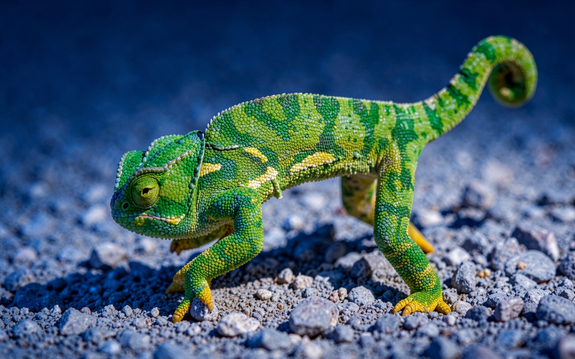 Скачайте с нашего сайта обои 'Зеленый хамелеон на сером каменистом грунте' в формате JPG, так как другие сайты обрезают края, а у нас доступен полный кадр.