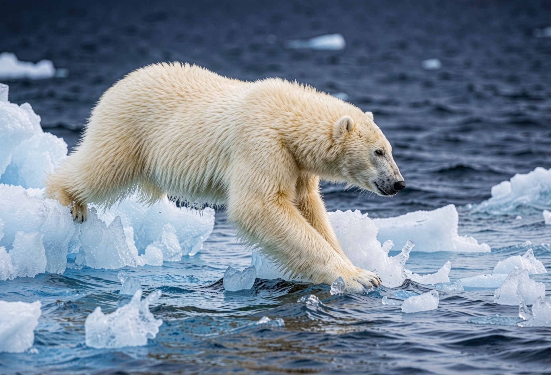 Доступны для скачивания JPG обои Белый медведь на льдинах в океане. Почему стоит скачать их? Файл оптимизирован для установки на рабочий стол и экран телефона.