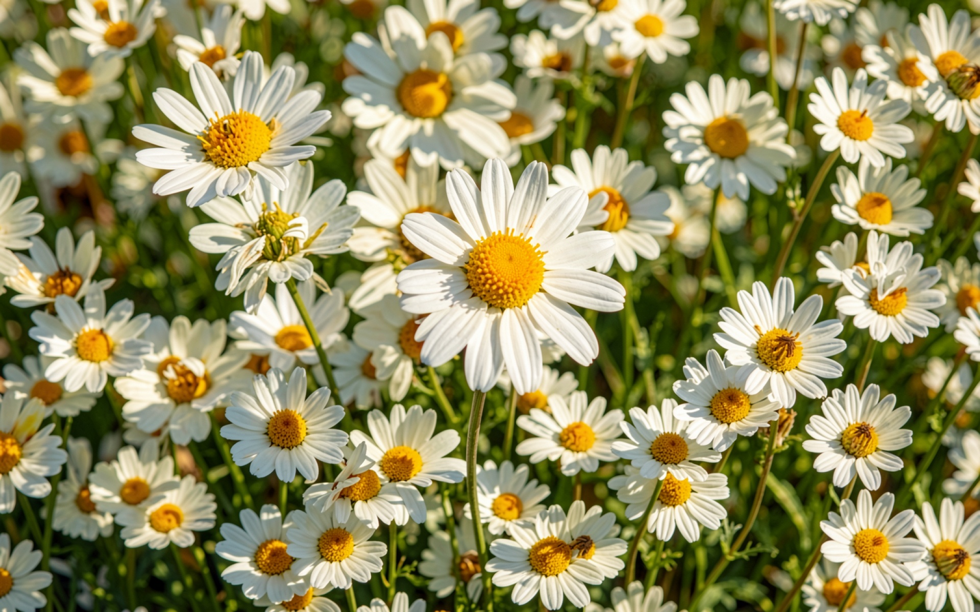 Согласно данным с botanicgardens.org, структура лепестков ромашки обладает особыми микроскопическими выступами, которые эффективно рассеивают свет, создавая эффект чистого белого цвета даже при интенсивном солнечном излучении. Нажмите кнопку скачивания, чтобы установить эти обои с ромашками на ваш ПК или телефон прямо сейчас.