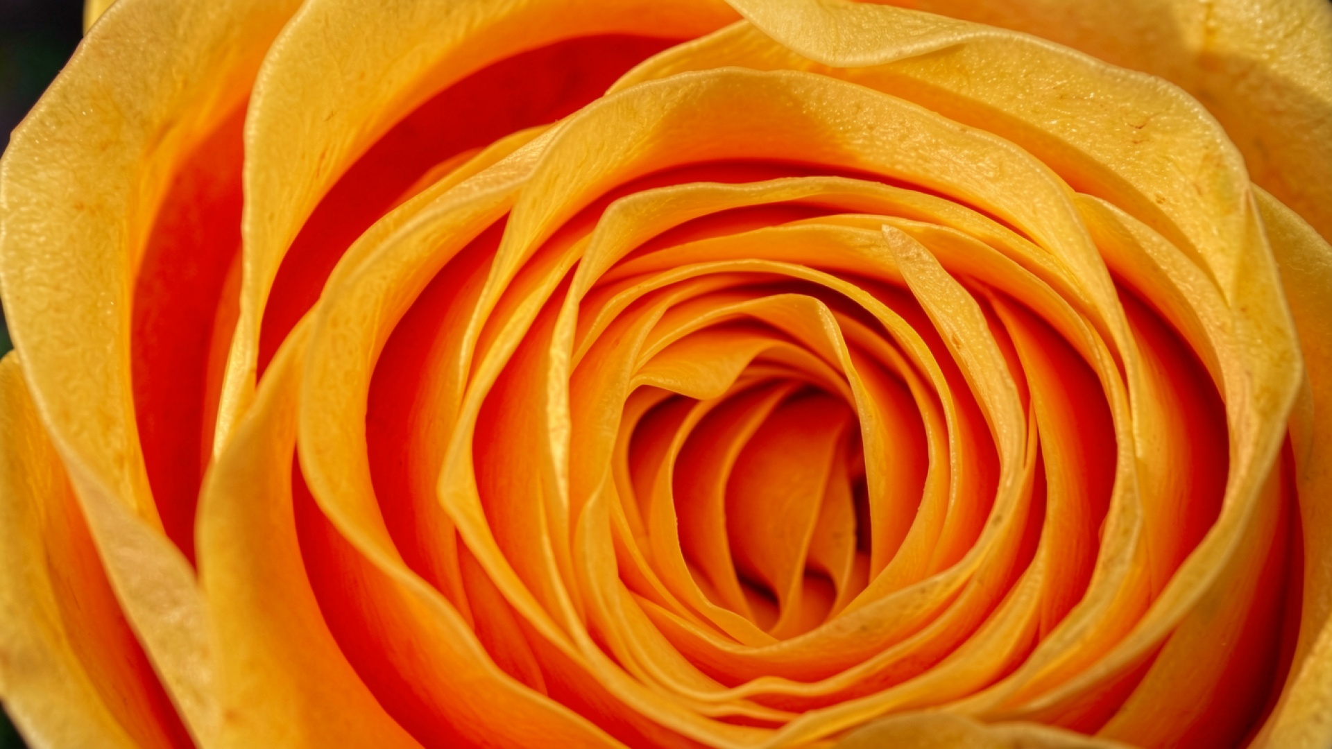 Изображение детально передает бархатистую текстуру лепестков и плавные переходы от насыщенного оранжевого центра к светло-желтым краям. Контрастное освещение создает глубокие тени в складках цветка, подчеркивая спиралевидную структуру бутона и естественные блики на поверхности. Градиенты фона мягко дополняют основную композицию, а удобный предпросмотр перед скачиванием позволяет оценить качество цветопередачи на вашем экране.