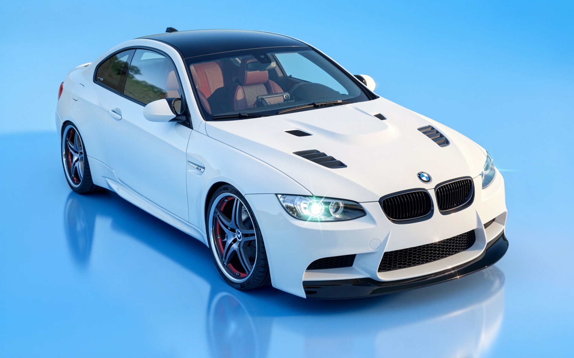 Белый автомобиль BMW M3 в голубом студийном пространстве обои