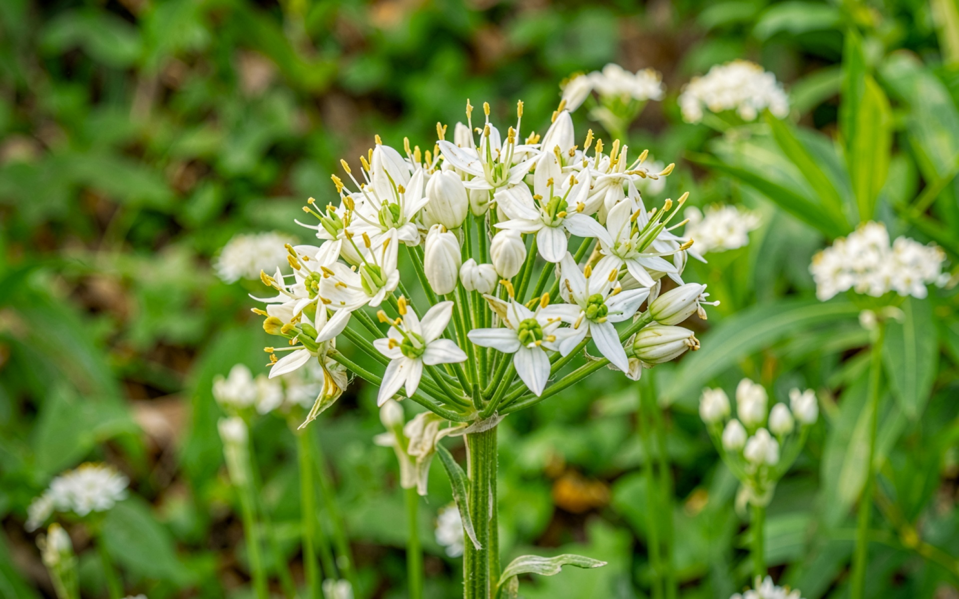 Доступны для скачивания JPG обои Белый цветок аллиума в зеленом саду. Почему стоит скачать их? Они подходят для профессионального редактирования без артефактов.