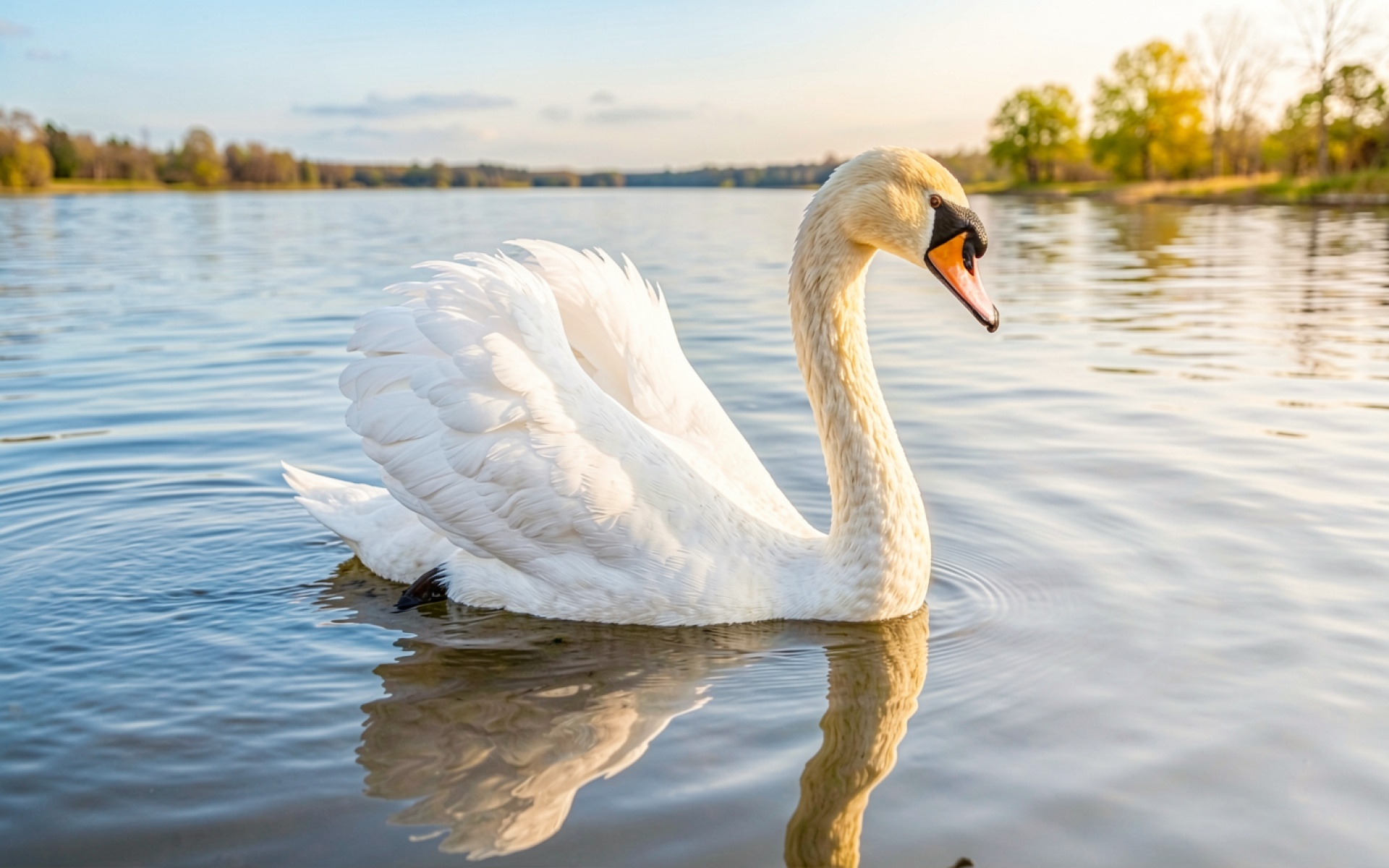 Загрузка JPG обоев Белый лебедь на спокойной воде озера с нашего сайта необходима, так как только этот JPG сохраняет метаданные цветокоррекции.