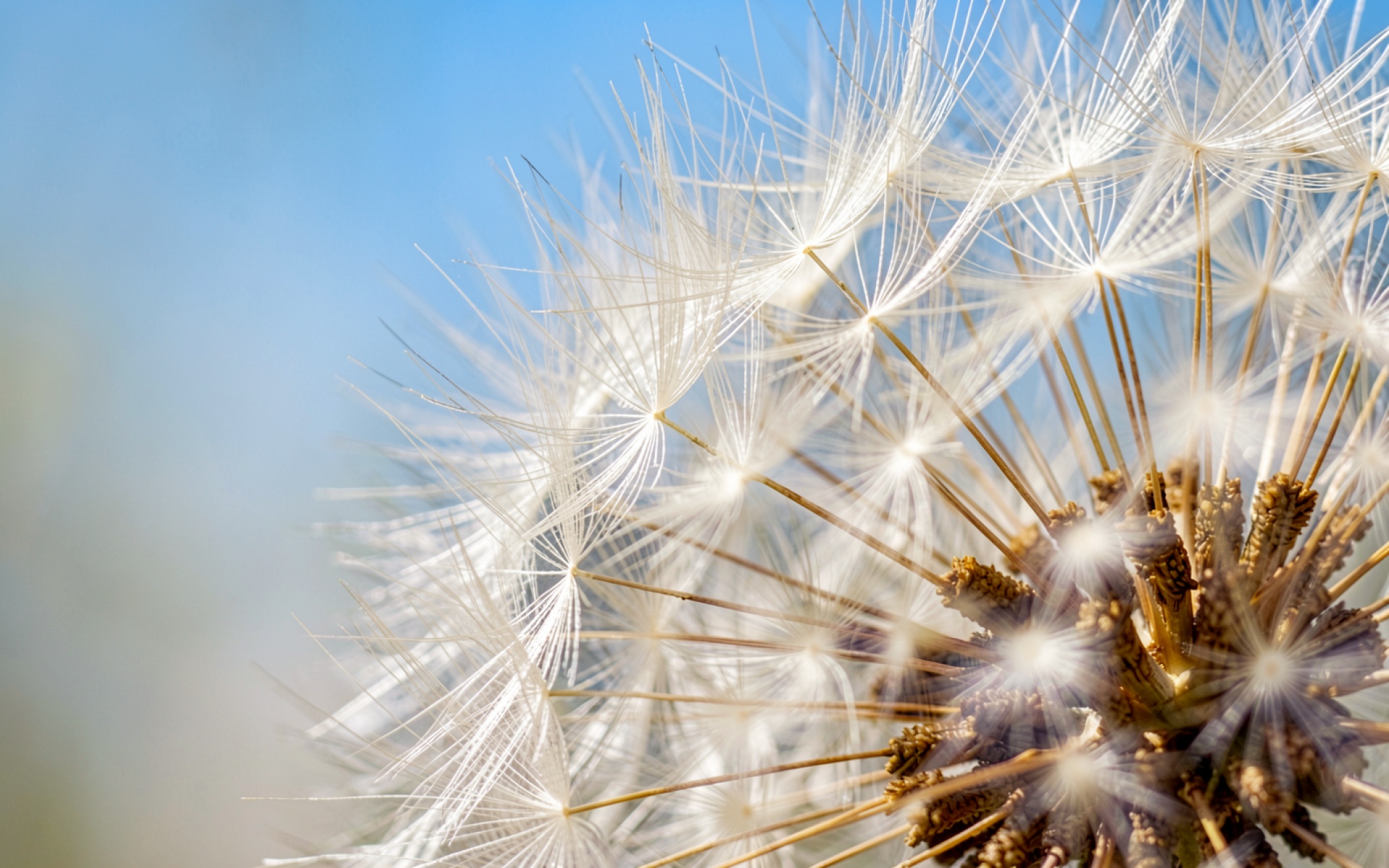 Белый одуванчик на фоне голубого неба обои