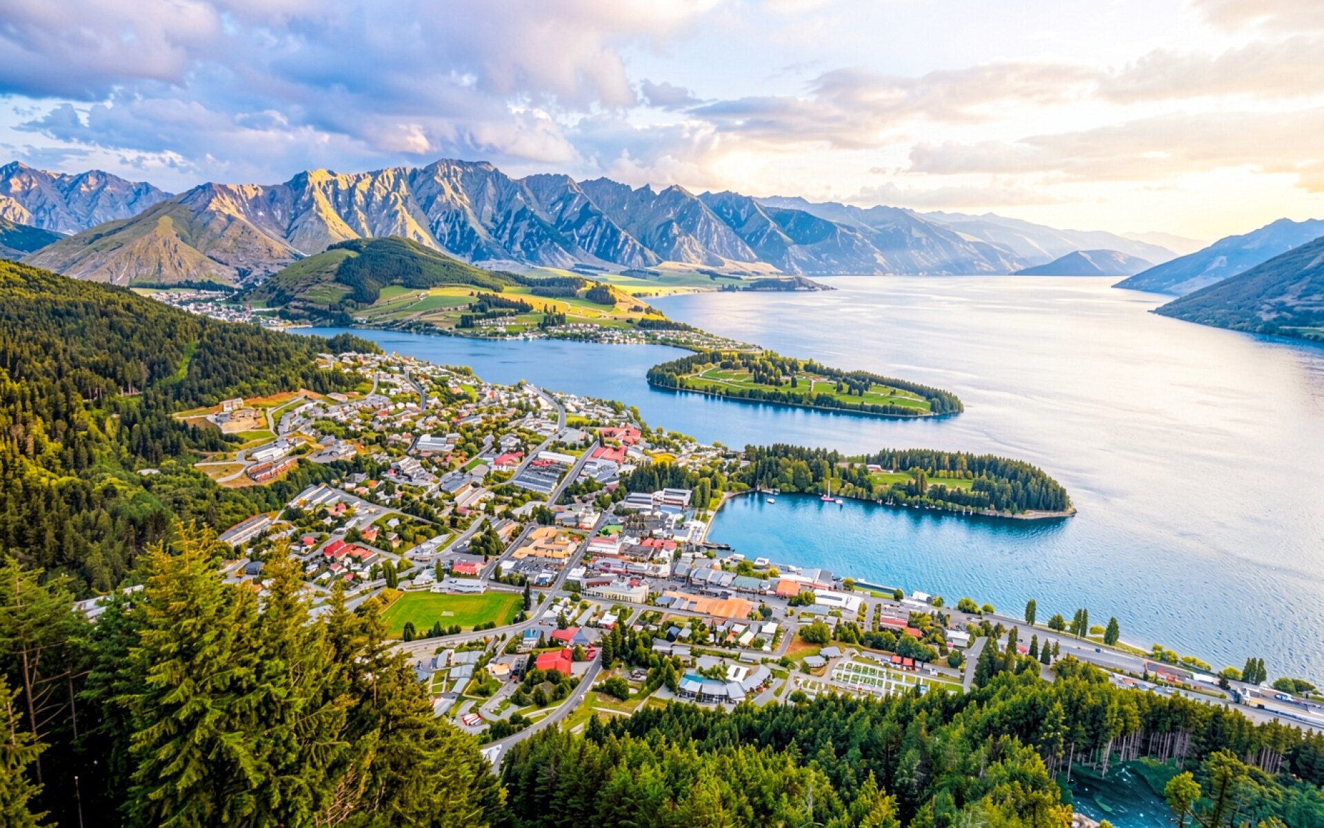 Панорама города Квинстаун озеро Вакатипу горы обои