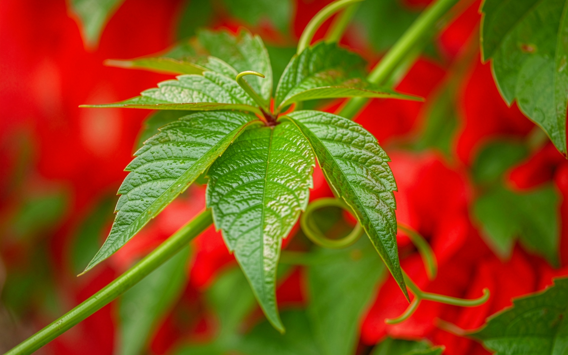 Согласно данным из botanicalgardens.org, хлорофилл в листьях плюща эффективно поглощает красный спектр света для фотосинтеза, что создает естественный визуальный контраст при совмещении с красными оттенками. Нажмите кнопку скачивания, чтобы установить эти обои с листом плюща на ваш ПК или телефон прямо сейчас.