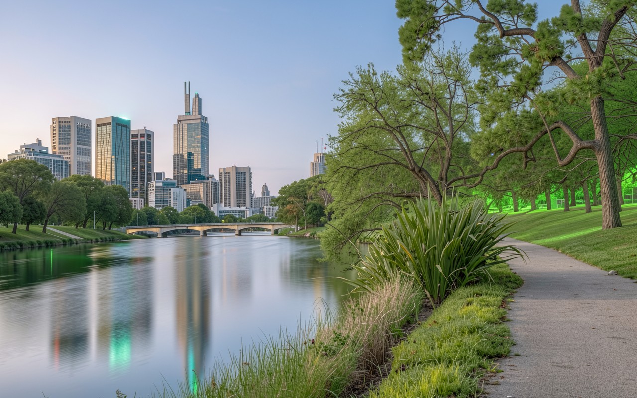 Согласно данным из nationalgeographic.com, городские реки в современных мегаполисах создают уникальные микроклиматические зоны, которые влияют на спектральное отражение света от стеклянных фасадов зданий и насыщенность зеленого цвета прибрежной флоры. Нажмите кнопку скачивания, чтобы установить эти обои с панорамой города на ваш ПК или телефон прямо сейчас.
