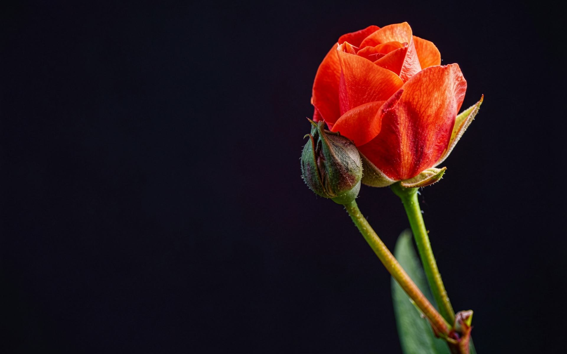 Красный бутон розы на темном фоне обои