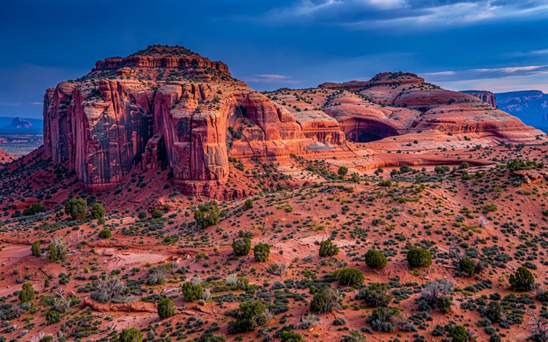 Наш ресурс дает вам возможность скачать обои 'Красные скалы пустыни под синим грозовым небом' в JPG, и причина в том, что файл оптимизирован для установки на рабочий стол и экран телефона.