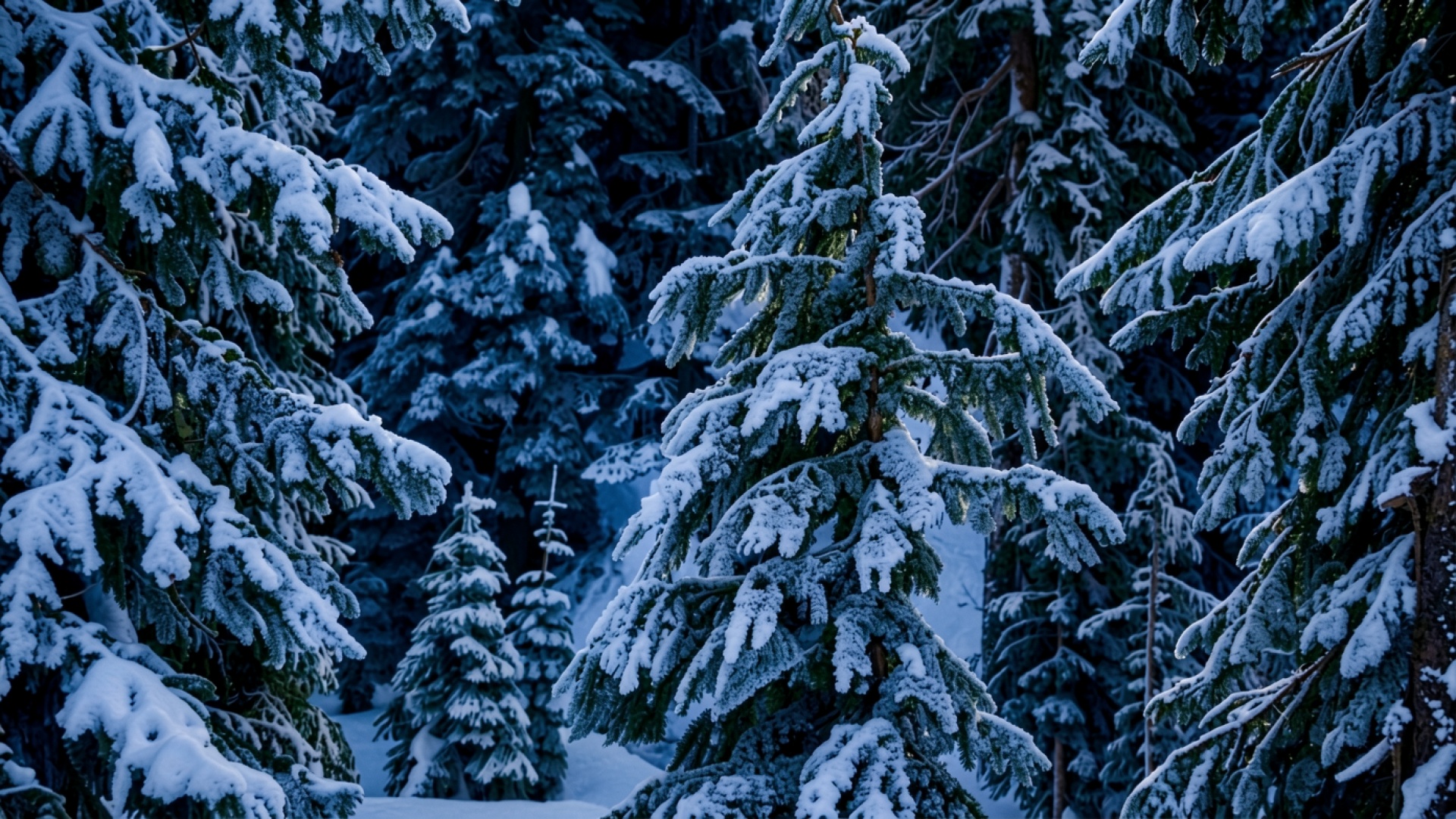 Техническое исполнение кадра подчеркивает контраст между глубокими синими тенями хвои и ярко-белыми массивами снега. Текстура замерзших игл передана четко, а мягкие градиенты освещения создают объем каждой ветви. Особое внимание уделено распределению света на верхних слоях снежного покрова, что добавляет сцене реализма. На сайте доступен удобный предпросмотр перед загрузкой, чтобы оценить качество отображения на вашем экране.