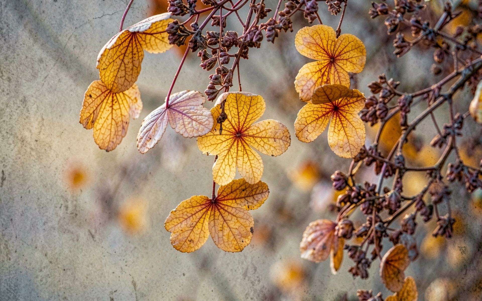 Согласно данным с botanicalgarden.org, листья вибнума в период осеннего перехода меняют пигментацию из-за распада хлорофилла и проявления каротиноидов, что придает им характерный золотисто-желтый оттенок с высокой насыщенностью. Нажмите кнопку скачивания, чтобы установить эти обои с листьями на ваш ПК или телефон прямо сейчас.