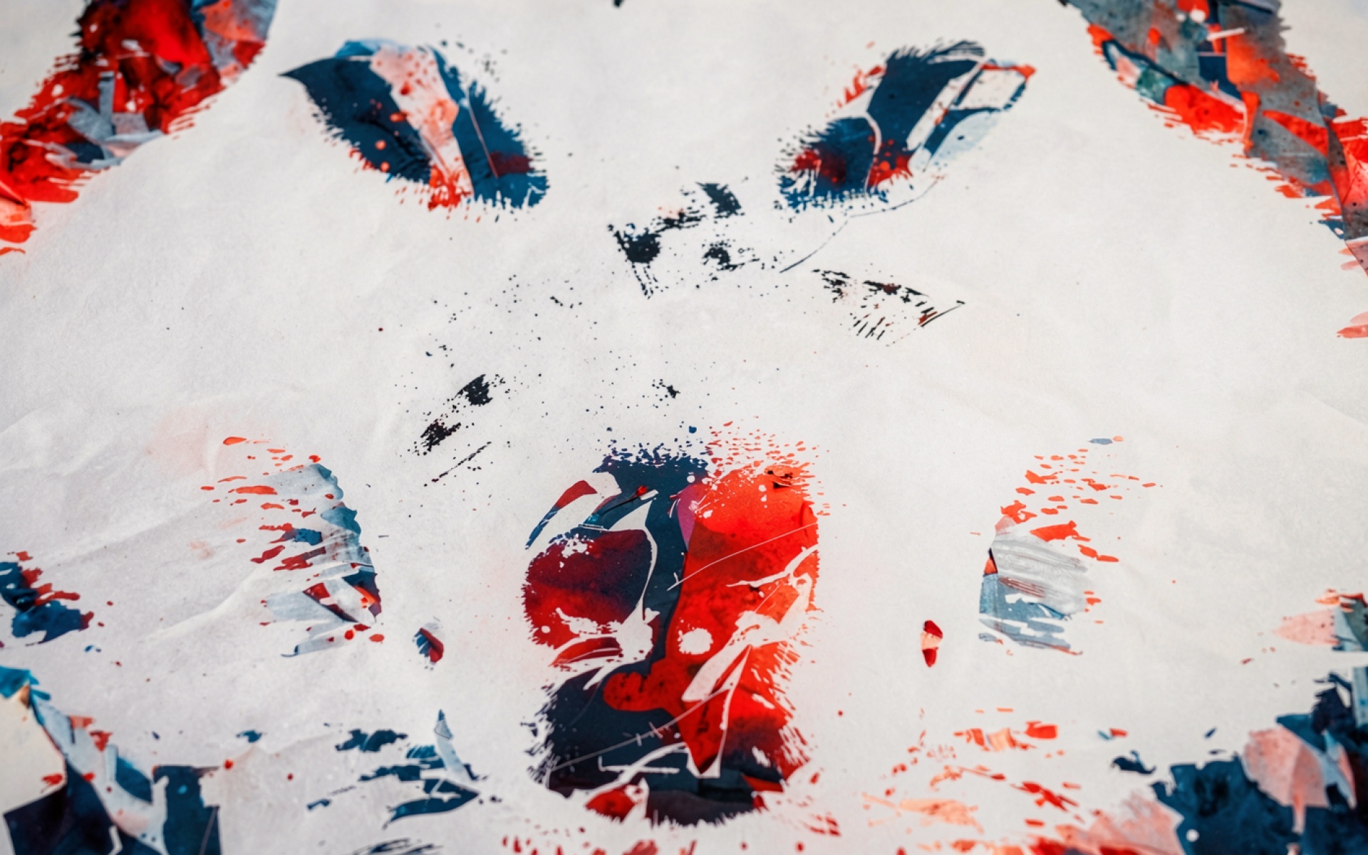 Изображение характеризуется динамичными мазками кисти и выразительной текстурой бумаги. Контраст между насыщенным красным и глубоким синим создает визуальное напряжение, подчеркивая контуры морды животного. Мягкие градиенты белого фона плавно переходят в резкие акценты теней, что придает композиции объем. На сайте доступен удобный предпросмотр перед скачиванием для оценки качества на экране.