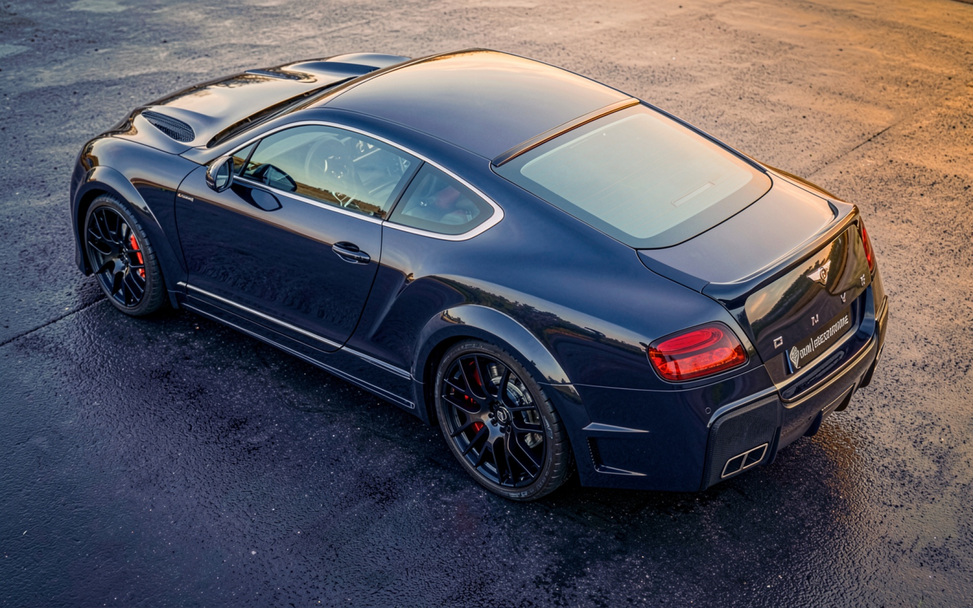 Темно-синий автомобиль Bentley Continental GT на асфальте обои