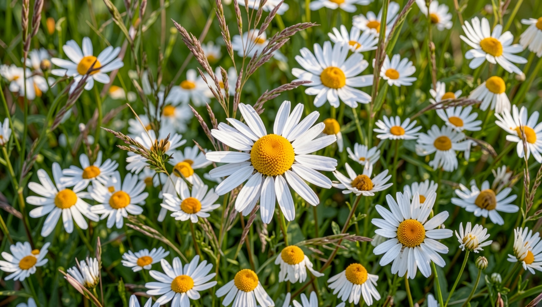 Согласно данным с botanicalgarden.org, структура лепестков ромашки обладает особыми микроскопическими бороздками, которые эффективно рассеивают свет, создавая эффект чистого белого цвета даже при интенсивном солнечном излучении. Нажмите кнопку скачивания, чтобы установить эти обои с ромашками на ваш ПК или телефон прямо сейчас