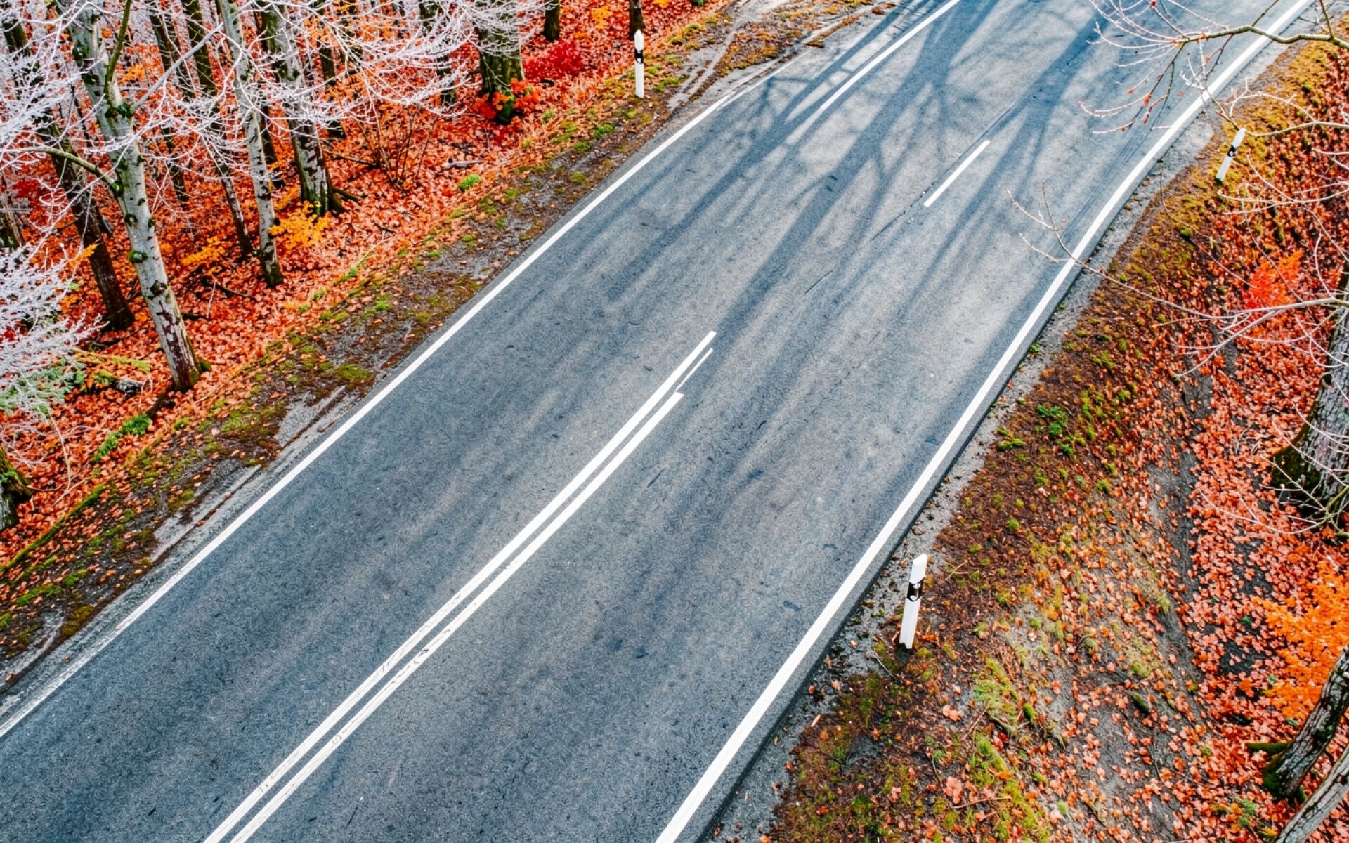 Осенняя дорога в лесу с рыжими листьями обои