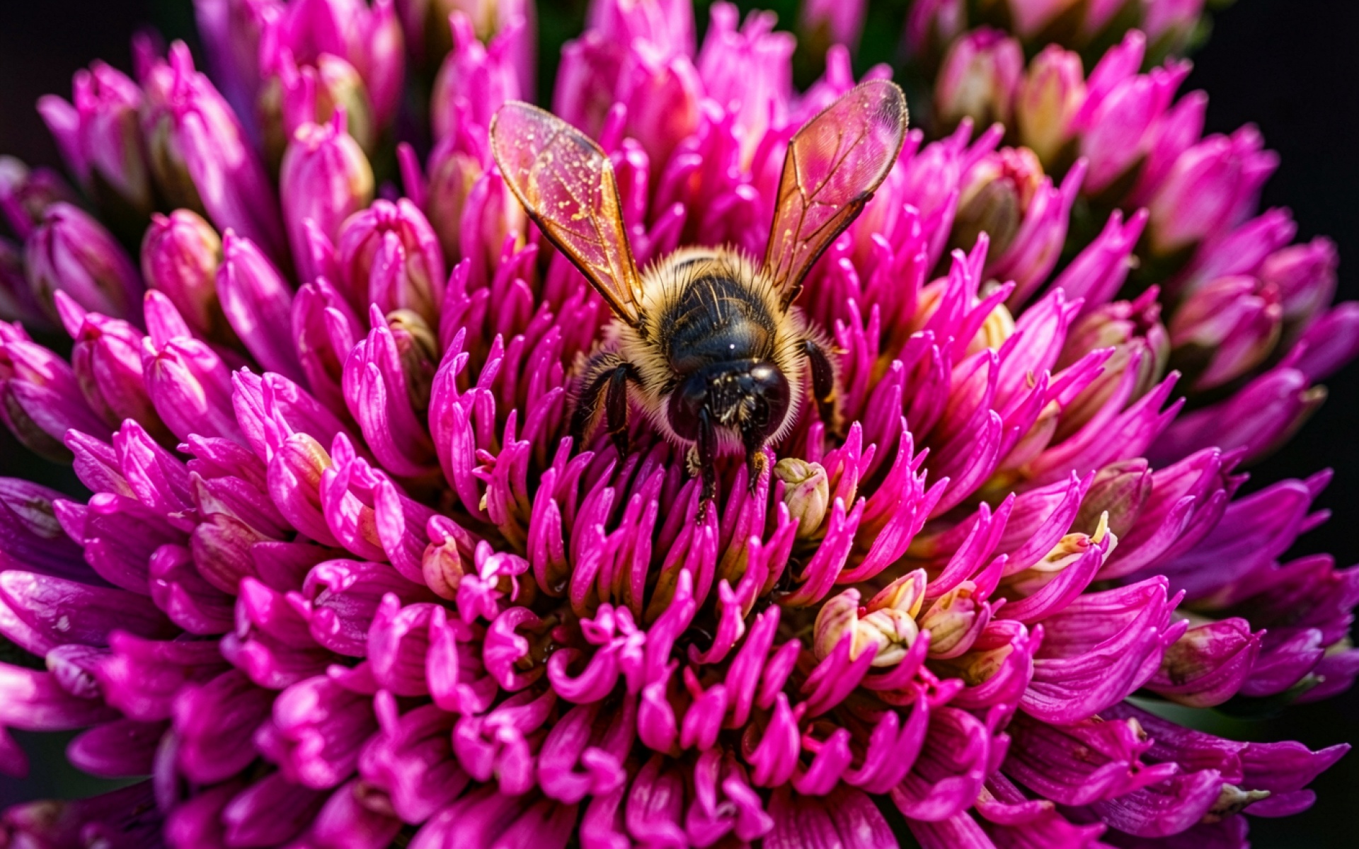 Медоносная пчела на ярко-розовом цветке клевера обои