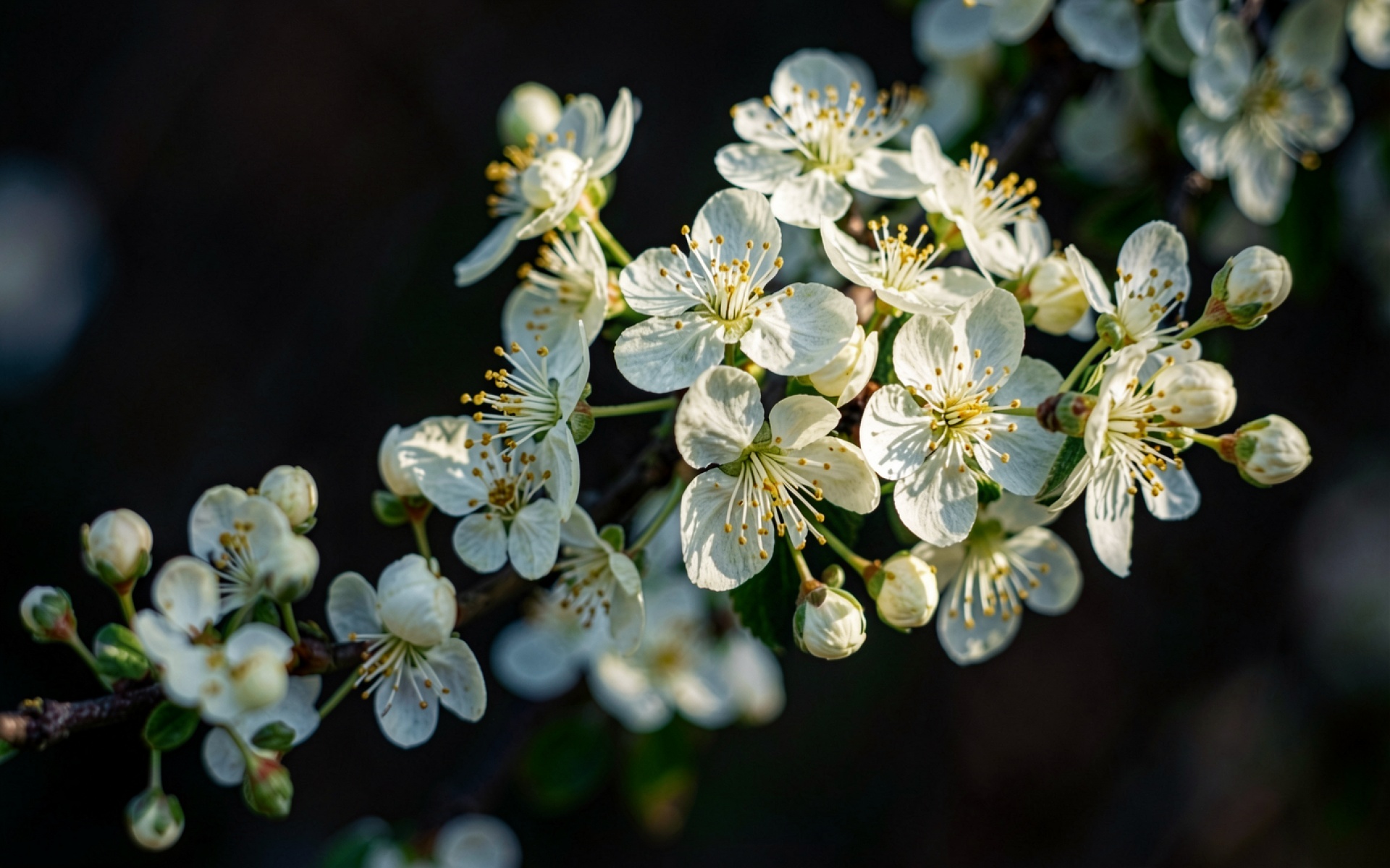 Белые цветы вишни на темном фоне обои