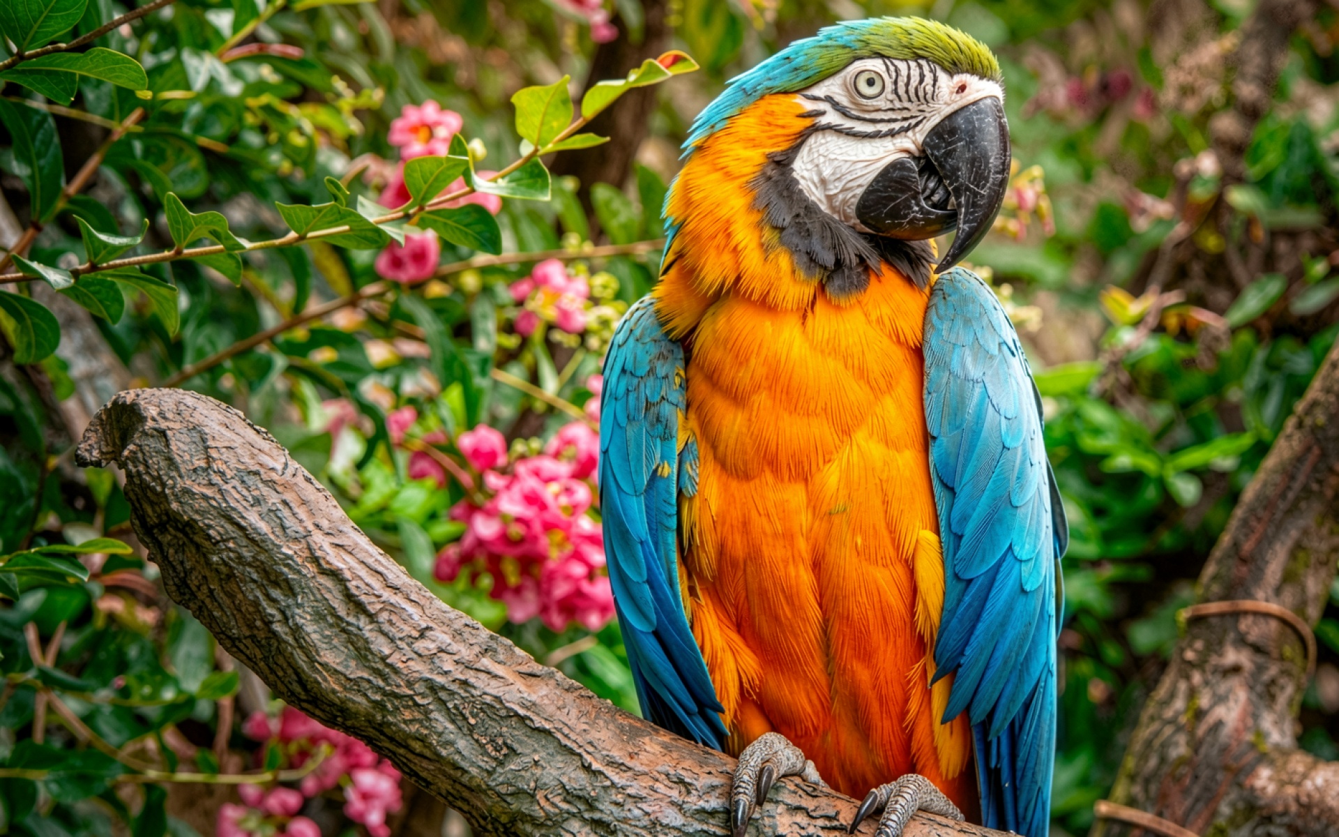 Здесь вы можете скачать JPG обои под названием 'Голубой ара на ветке среди розовых цветов', и почему вы должны это сделать: альтернативы сжимают сильнее, но мы предоставляем оригинал.