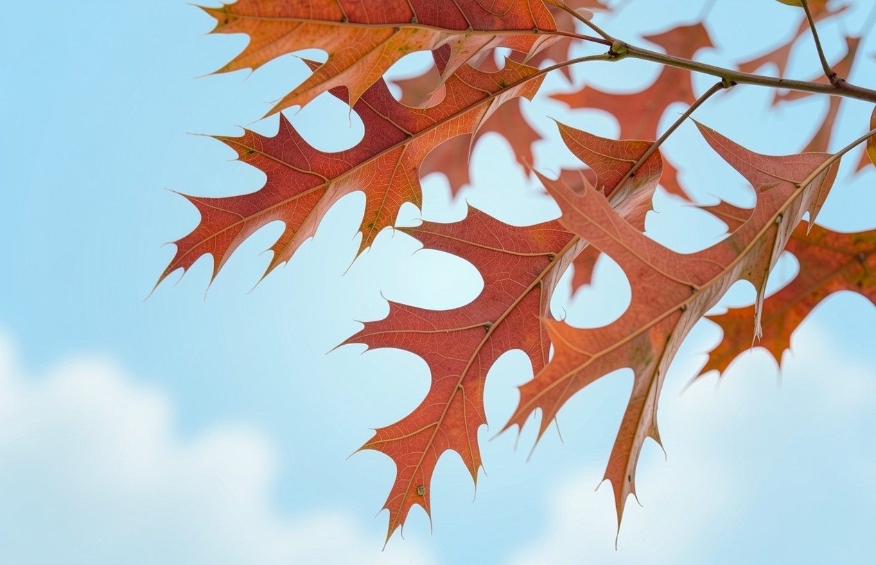Наш сайт предлагает скачать обои Осенние листья дуба на голубом фоне в JPG, и причина проста: здесь нет полос градиента из-за низкого битрейта.