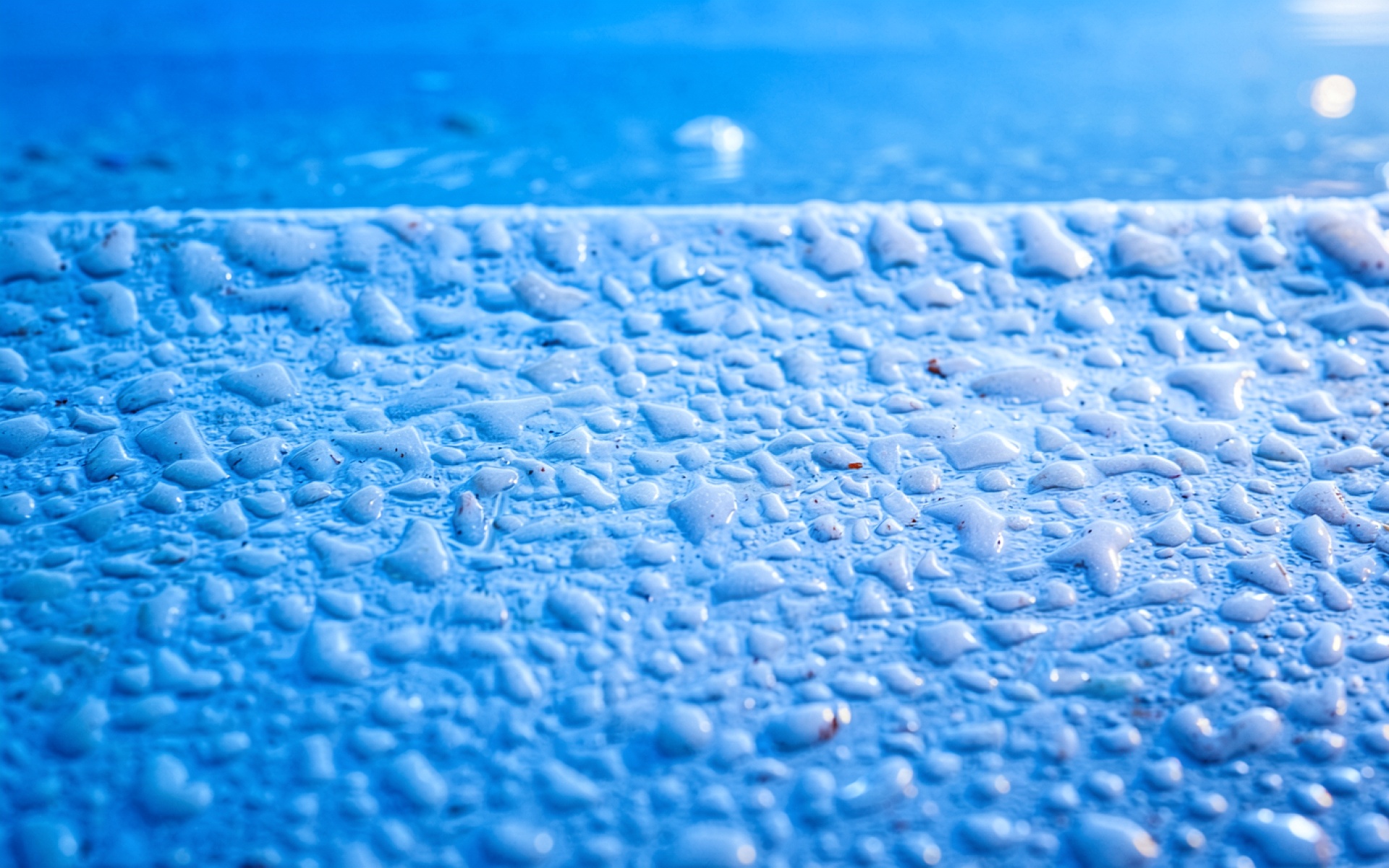 Капли воды на синей глянцевой поверхности обои