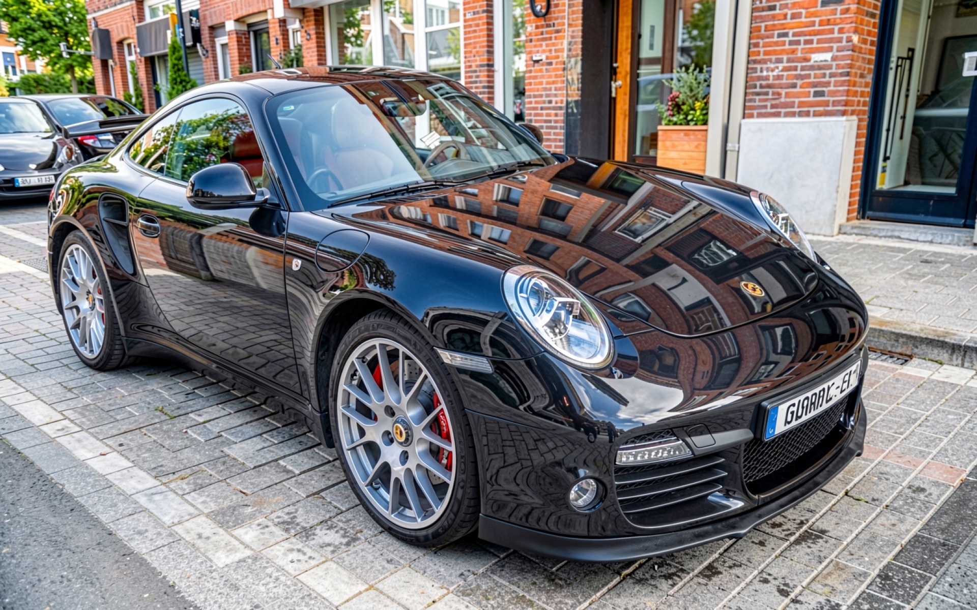 Наш сайт предлагает скачать обои Черный спортивный автомобиль Porsche на городской улице в JPG, и причина проста: здесь нет полосатого градиента из-за низкого битрейта.