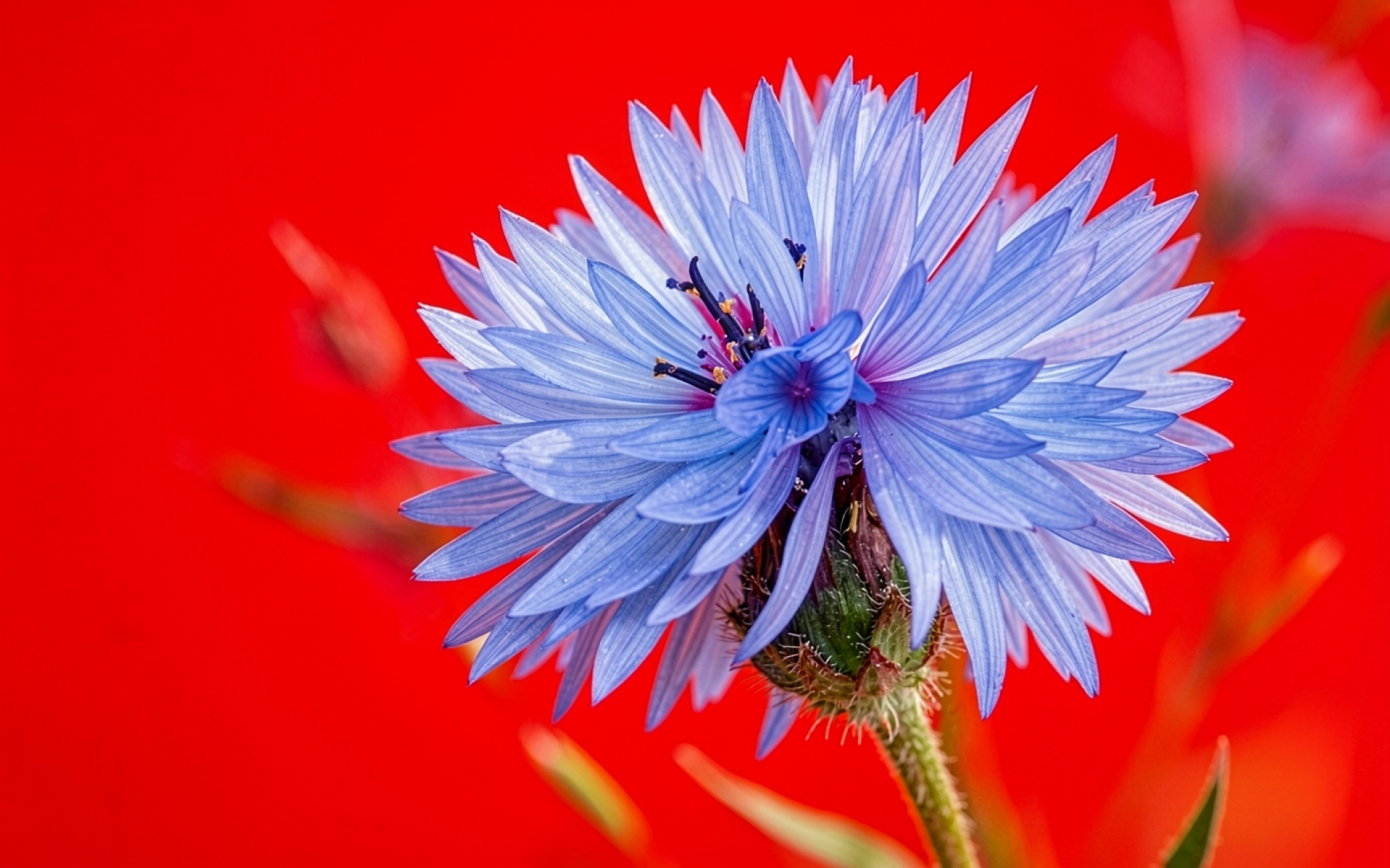 Наш ресурс дает вам возможность скачать обои Голубой цветок кукурузника на ярко красном фоне в JPG, и причина в том, что они подходят для профессионального редактирования без артефактов.