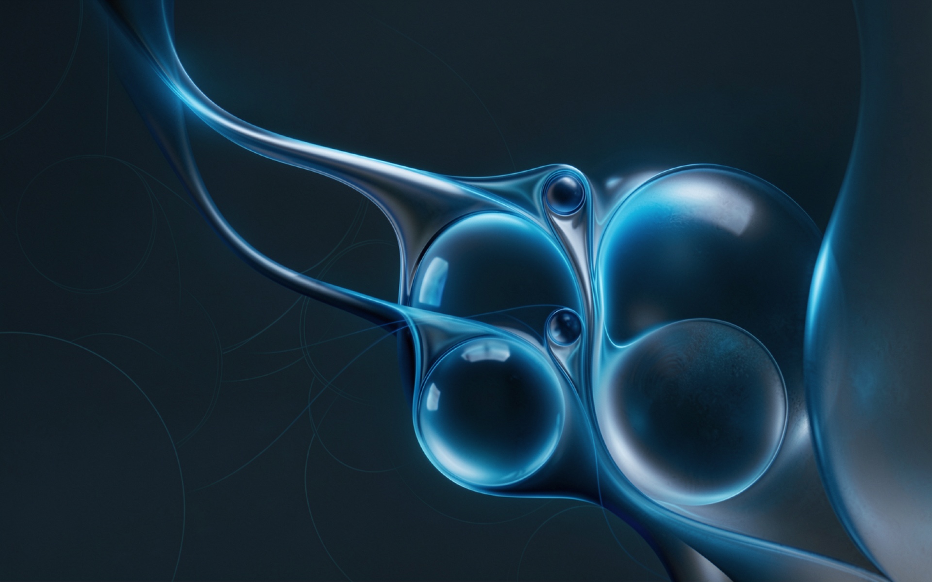 Абстрактные синие стеклянные сферы в темном пространстве обои