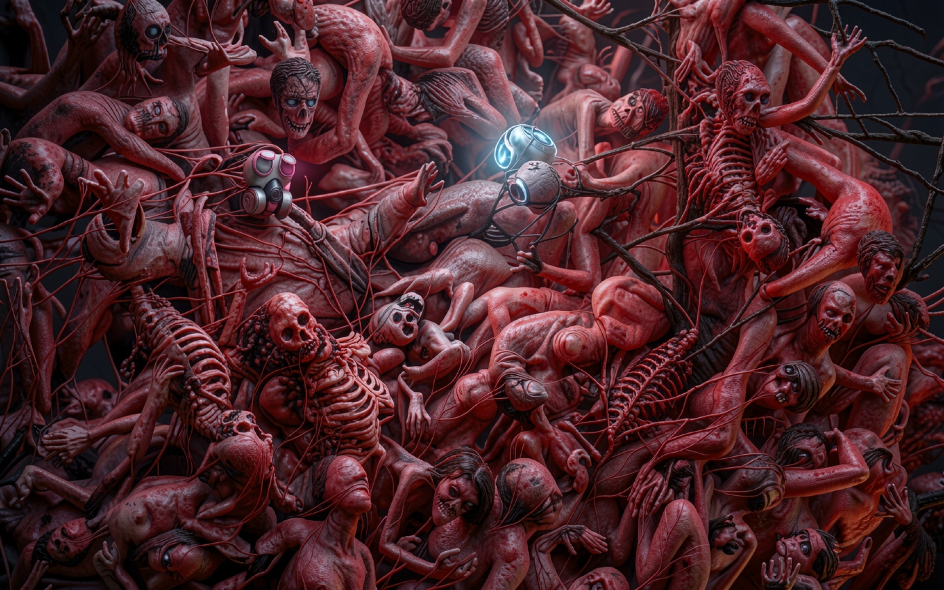 На нашем сайте вы можете скачать обои в JPG для ПК или телефона Сюрреалистичный коллаж из красных тел в темноте. Почему стоит скачать JPG обои Сюрреалистичный коллаж из красных тел в темноте именно у нас? Потому что другие сайты обрезают края, а у нас доступен полный кадр.