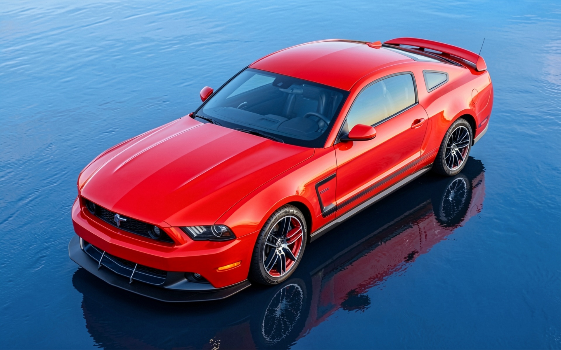 Красный автомобиль Ford Mustang на синей воде обои