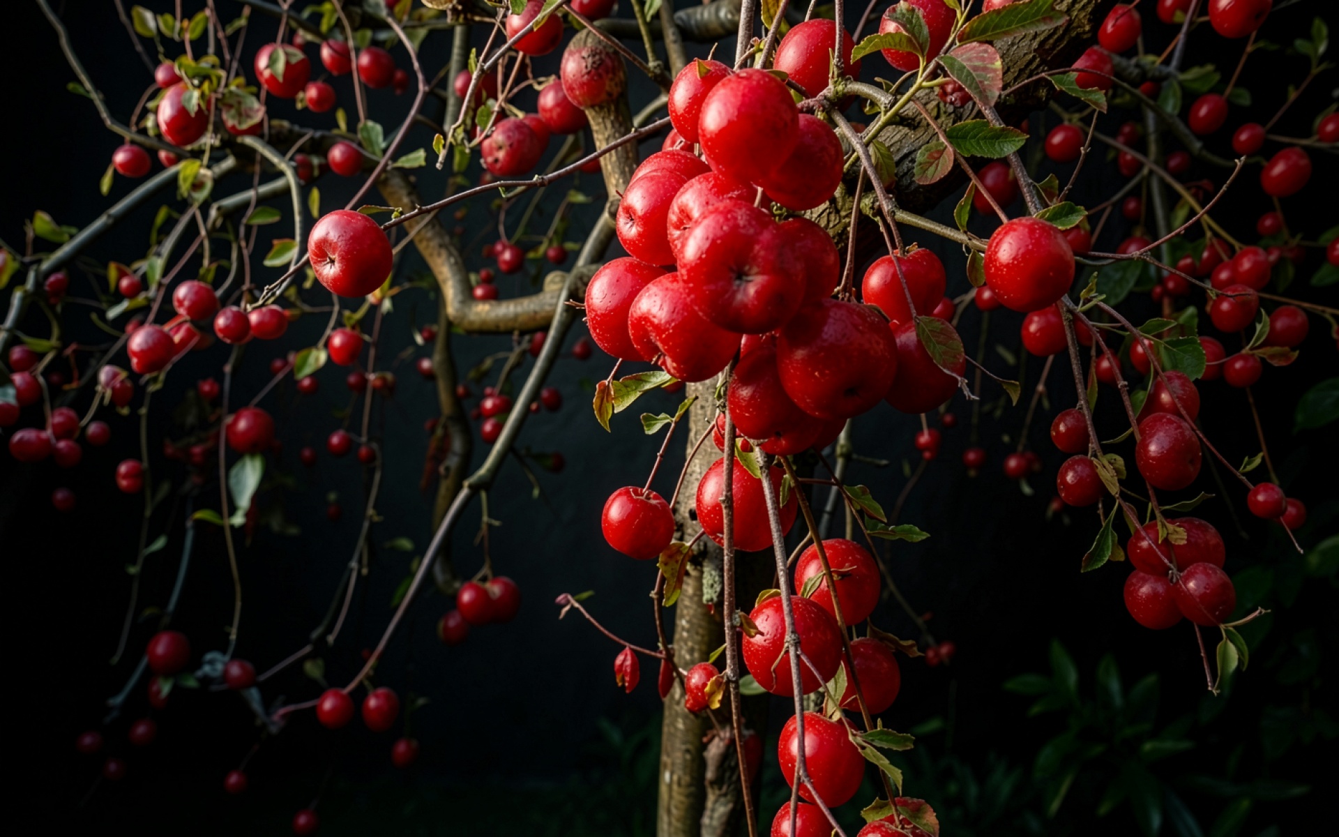 На нашем сайте вы можете скачать обои 'Красные яблоки на ветвях темного дерева' в JPG для ПК или телефона – и вот почему: изображение подверглось минимальному сжатию, что позволило сохранить все мелкие детали.