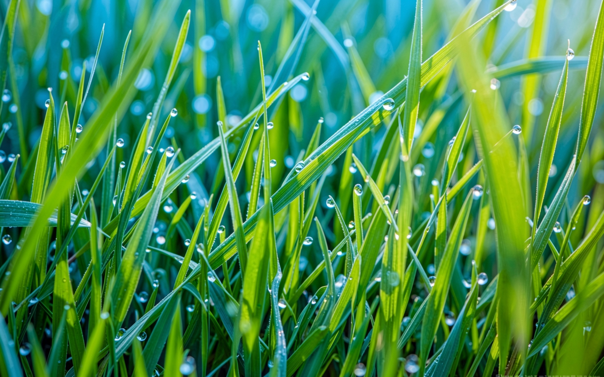 Зеленая трава с каплями росы утром обои