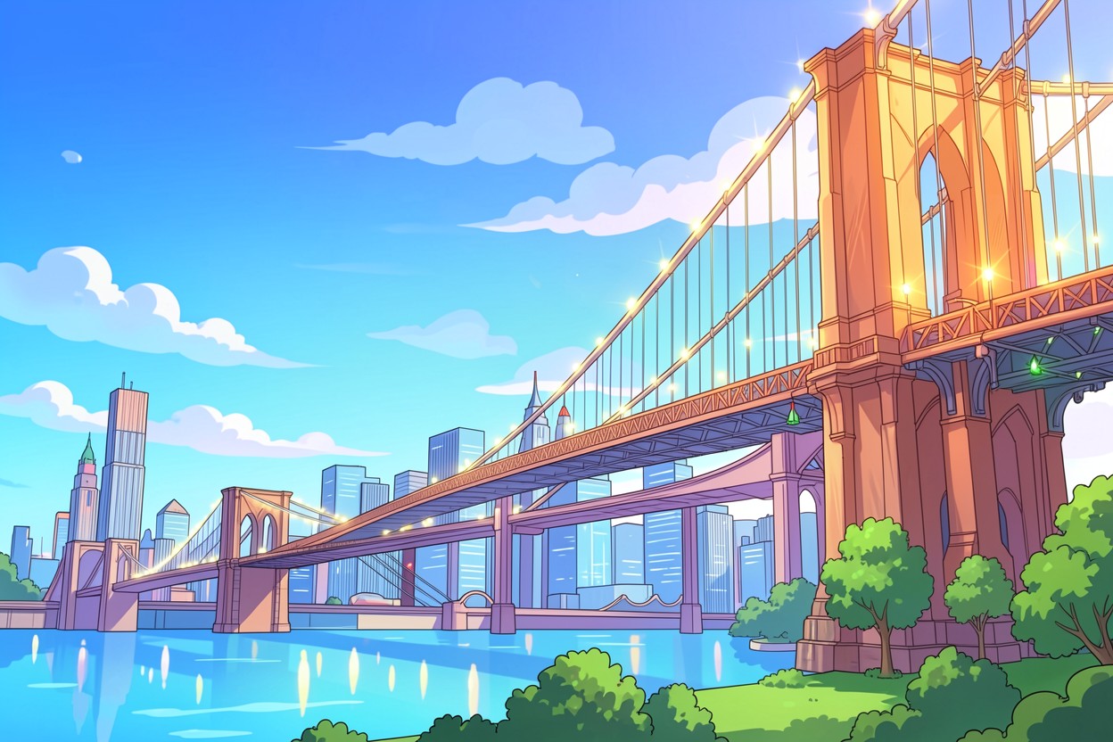 На нашем сайте вы можете скачать обои Бруклинский мост в солнечном стиле аниме в JPG для ПК или телефона – и вот почему: только здесь оригинальное сжатие с минимальными потерями.