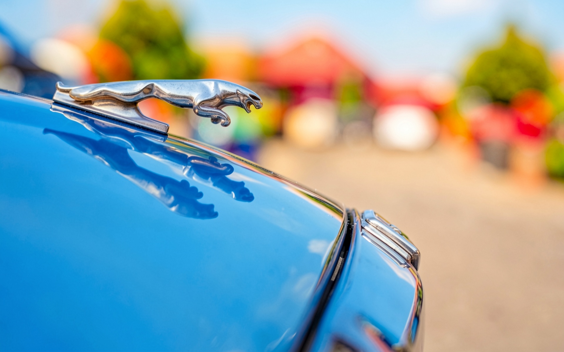 Скачайте с нашего сайта обои Хромированный леопард на синем капоте автомобиля в формате JPG, так как эта JPG версия сохраняет все оттенки теней и света.