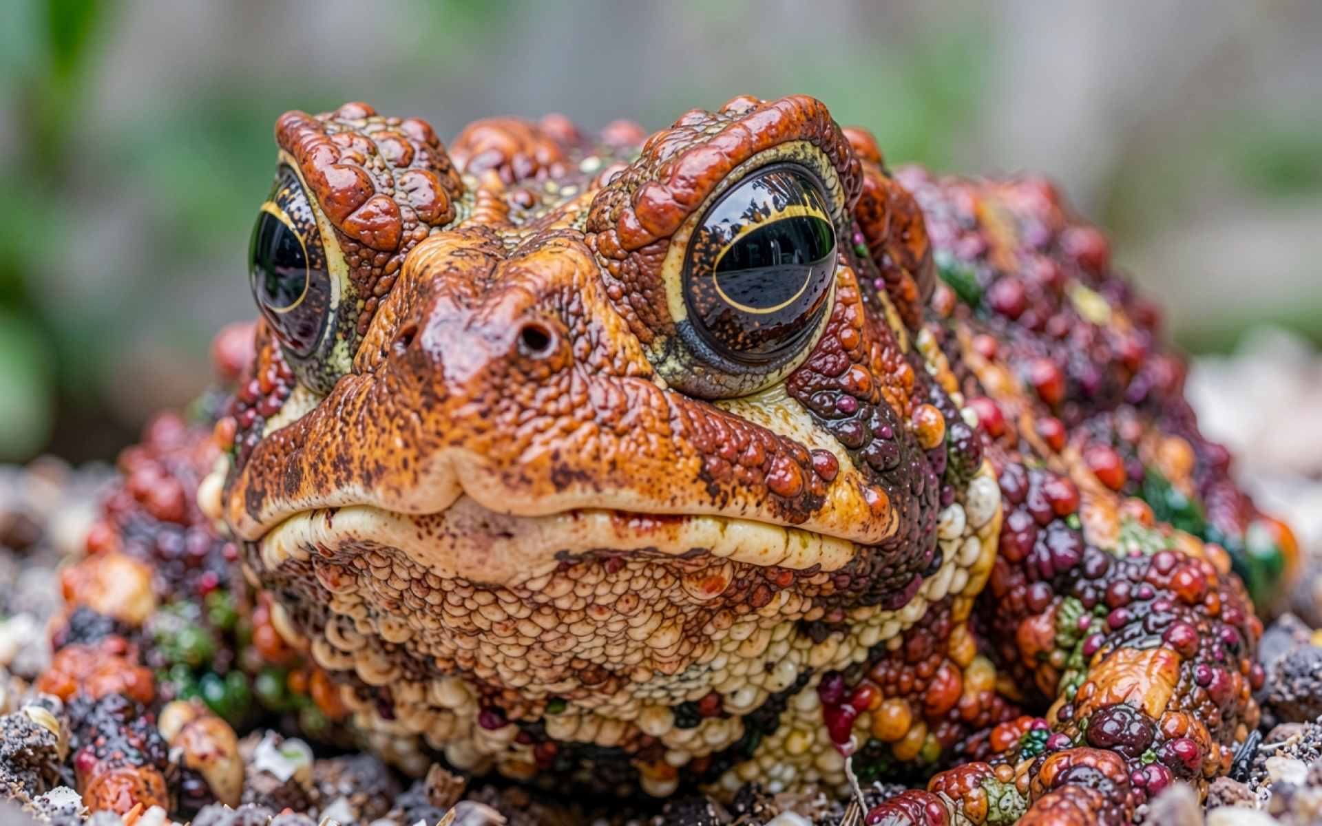 Коричневая жаба с пупырчатой кожей в макросъемке обои