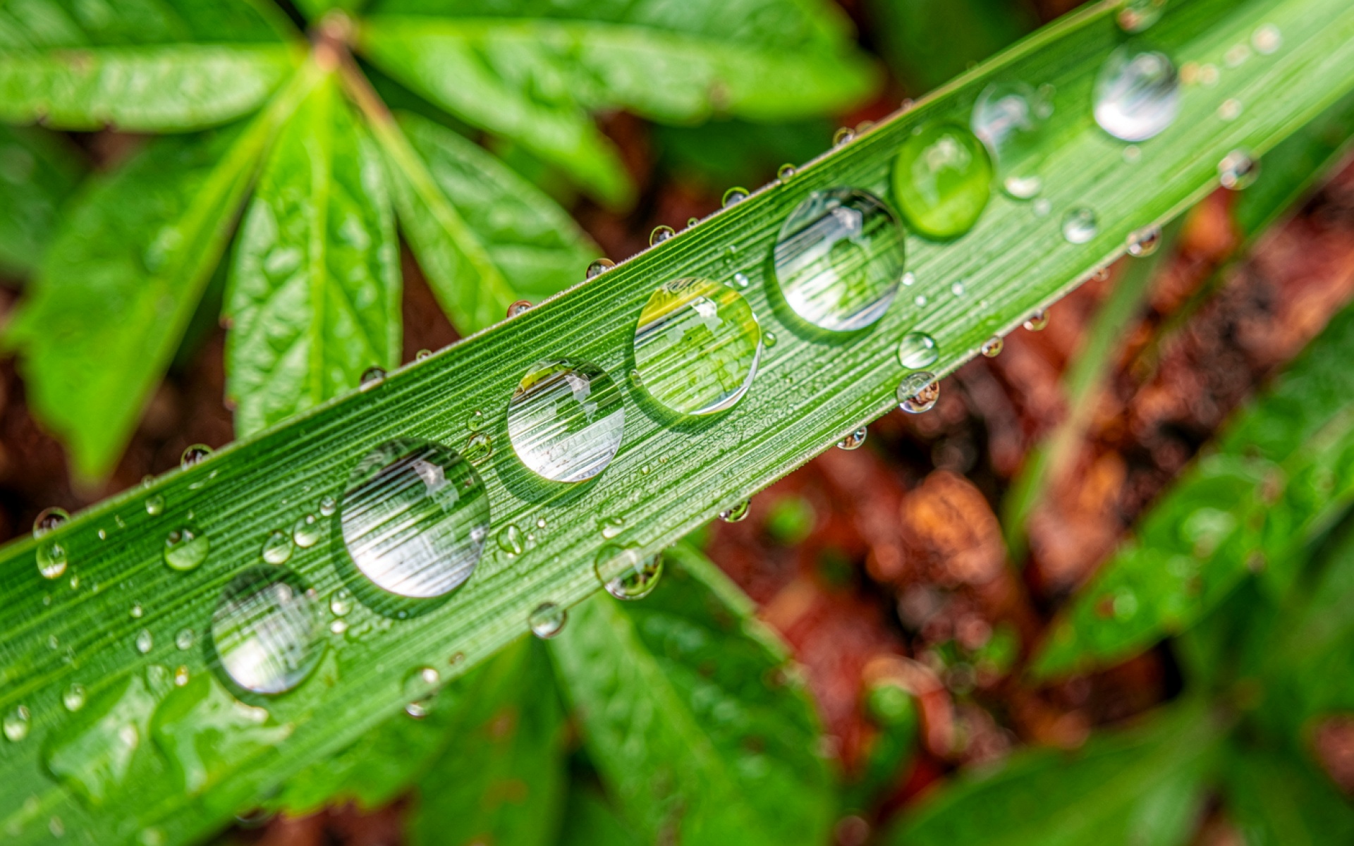 Капли росы на зеленом листе травы обои